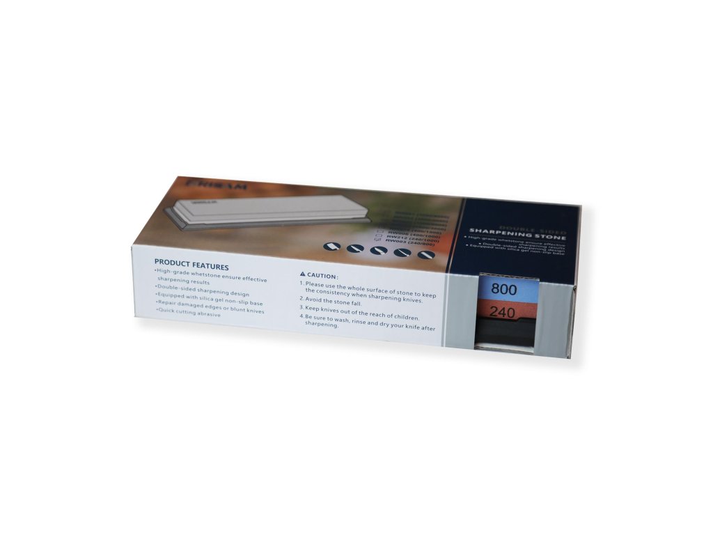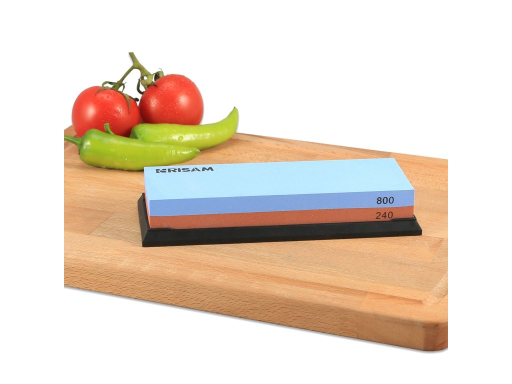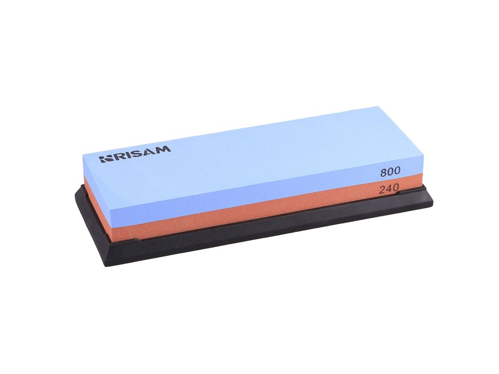 Kombinovaný brusný kámen Risam s velmi rychlým brusným a leštícím efektem. Kámen je vyrobený ze syntetického Korundu (oxid hlinitý). Brusný kámen je dodáván s gumovou protiskluzovou podložkou. Hrubost JIS #240/#800.