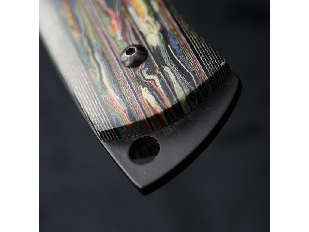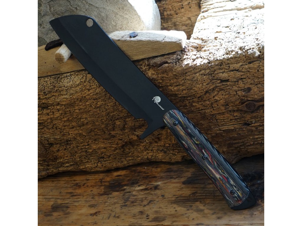 Mačeta Dellinger Ravenage s rukojetí z barevné Micarty je ručně kovaná a zpracovaná z oceli D2. Čepel mačety má povrchovou úpravu black stonewashed. Využít ji můžete jak v kuchyni na krájení a sekání zeleniny, masa a kostí, tak pro práce venku jako je kácení stromů, úprava zahrady nebo příprava dřeva pro oheň. Je to silný nástroj s dlouhou a širokou čepelí, což umožňuje provádět silné řezy a snadno pronikat do husté vegetace. Mačeta Dellinger Ravenage má na špičce čepele zaoblený konec, což umožňuje provádět sekání s rotačním pohybem.