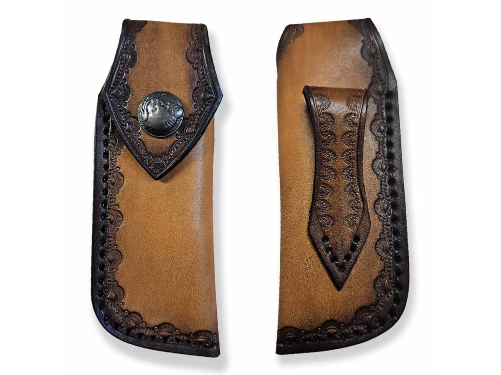 Pouzdro z hovězí kůže pro zavírací lovecký nůž