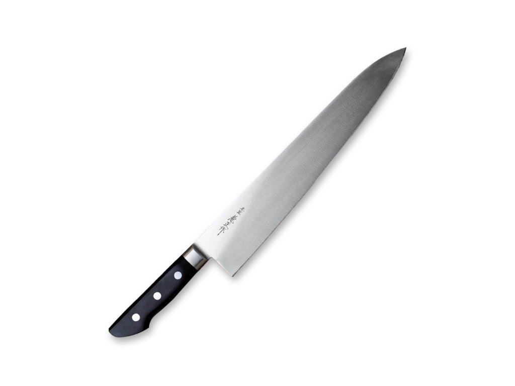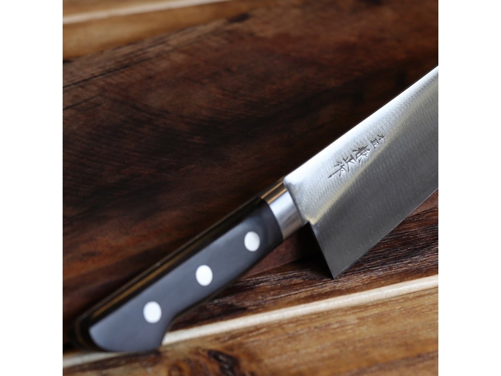 Kuchařský nůž Gyuto ze série Kanetsune Honsho Kanemasa E-series. Nůž Gyuto je japonskou verzí západního kuchařského nože. Lze jej používat s různými technikami krájení pro širokou škálu kuchyňských úkolů a je vhodný pro krájení naprosté většiny druhů masa, ryb, zeleniny a ovoce. Je skutečně víceúčelový a práce s ním je hbitá a přesná.