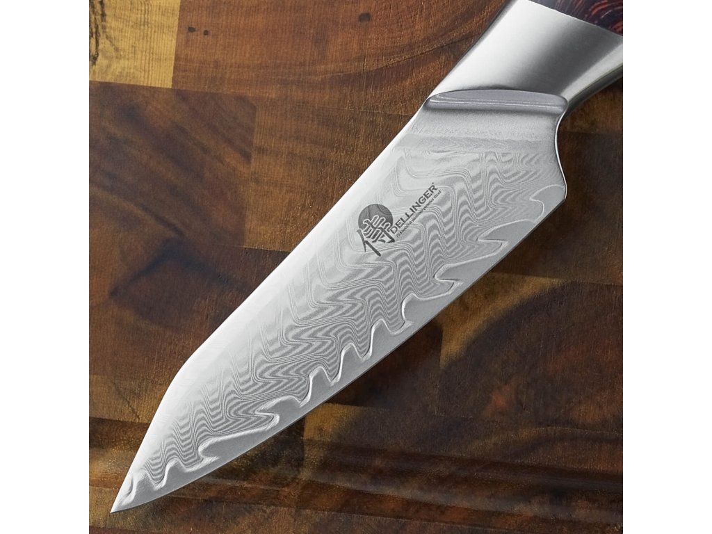 Čepel nožů ze série Dellinger Volcano je tvořena jádrem z práškové oceli 14Cr14MoVNb o tvrdosti HRC 62-64, které je vloženo mezi 72 vrstev damaškové oceli. Díky tomu je čepel mimořádně odolná a houževnatá. Dokonale vyvážená, přesně zúžená čepel japonského tvaru s překrásným damaškovým vzorem minimalizuje tření při řezu a zabraňuje přilepení krájeného materiálu k čepeli. Damascénský vzor nožů ze série Dellinger Volcano je jedinečný a neopakovatelný.