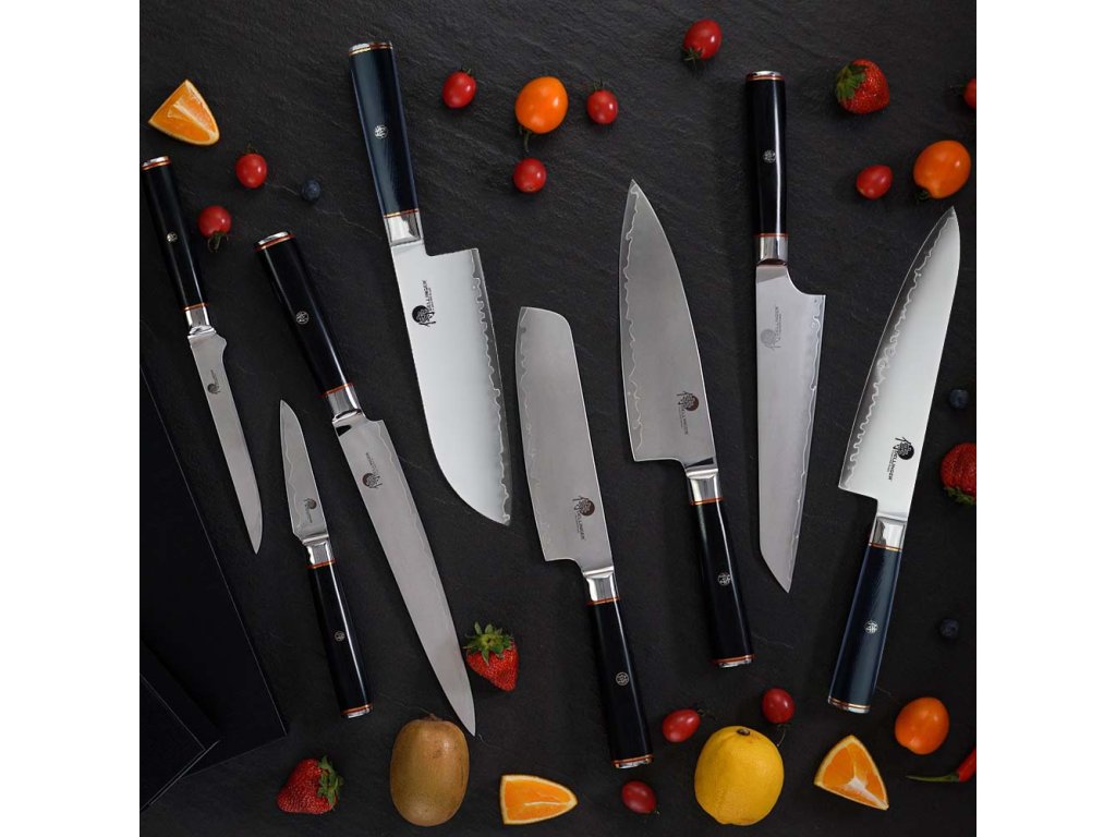 Rukojeť je vyrobena z materiálu G-10 a je zdobená středovým mozaikovým nýtem se znakem samuraje. Rukojeť skvěle padne do ruky a tím poskytuje pohodlí. Nože jsou dokonale vyvážené a zabraňují únavě rukou. Tím je zajištěna maximální kontrola a přesnost.