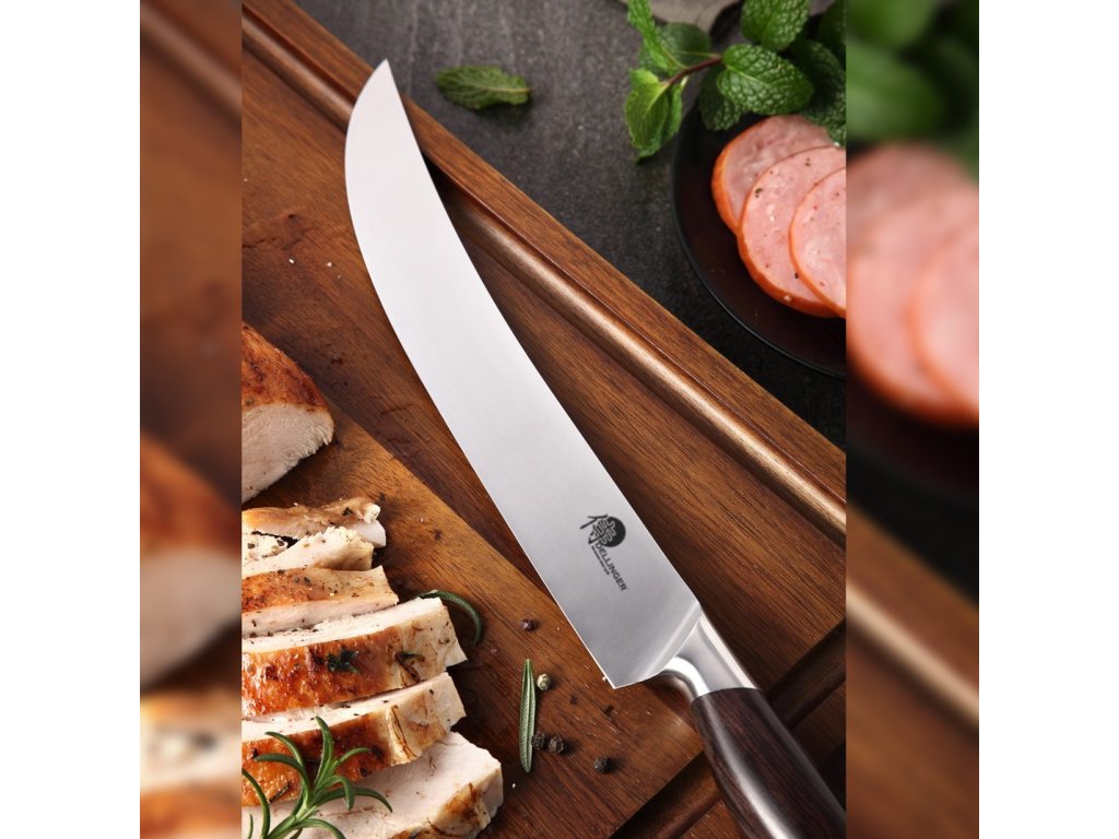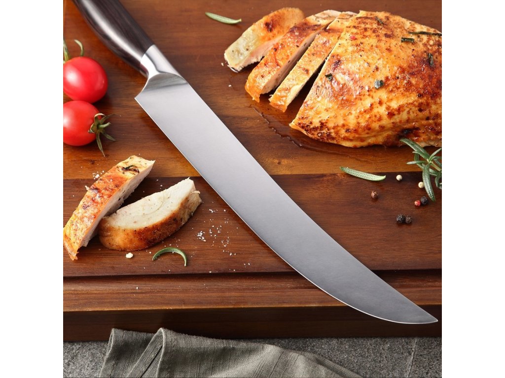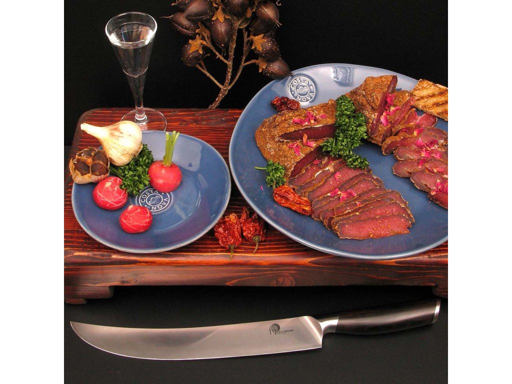 Plátkovací kuchařský nůž Slicer Dellinger BBQ Carve s čepelí z německé oceli 1.4116, s ergonomickou ebenovou rukojetí západního stylu. Nůž je ideální pro plátkování pečeně, šunky nebo krůty. Nůž je skvělý pomocník pro milovníky hovězího carpaccia. Délka ostří 260 mm.