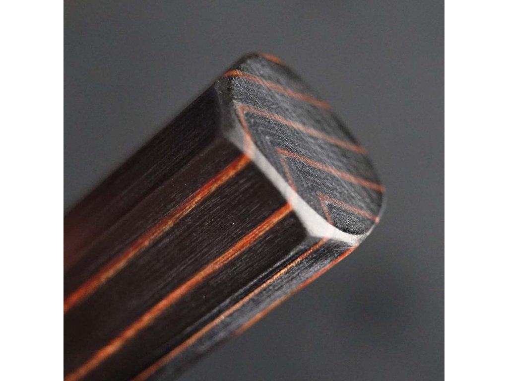 Osmihranná rukojeť asijského stylu PakkaWood s imitací tropického dřeva ZebraWood, známý také jako Microberlinia brazzavillensis, je exotická dřevina pocházející z tropických oblastí západní Afriky. Je ceněná především pro svůj výrazný pruhovaný vzor, který připomíná zebří srst, což jí dodává nezaměnitelný estetický charakter. Rukojeť z tohoto dřeva nejen skvěle vypadá, ale také nabízí příjemný úchop, který ocení každý uživatel.