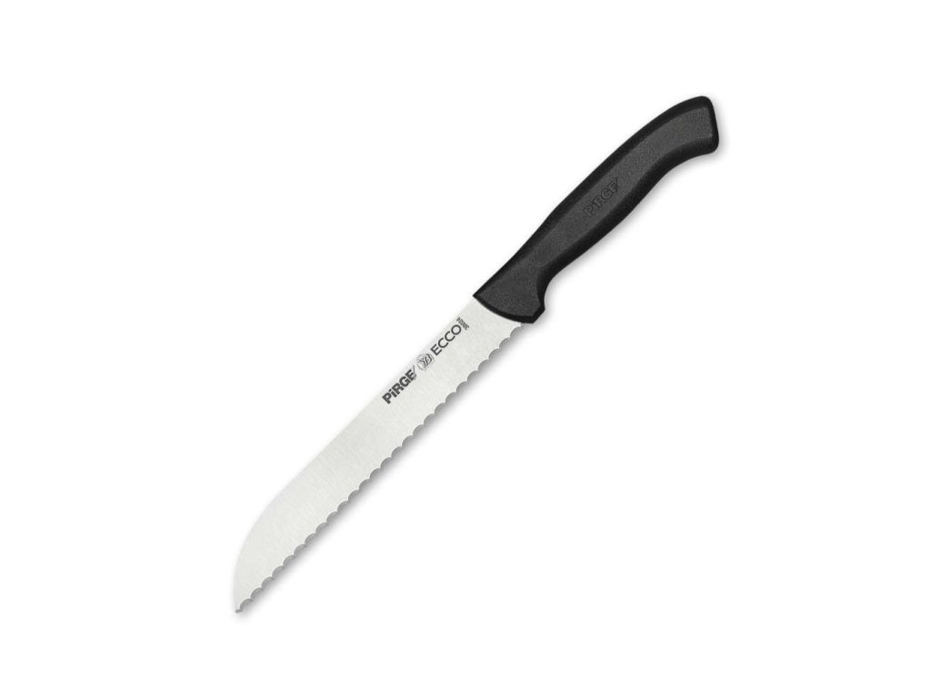 Nůž na pečivo PIRGE ECCO z německé nerezové oceli 1.4116 a rukojetí z polypropylenu (PPC). Nůž na chléb, čerstvé nebo suché pečivo a bábovky. Délka ostří 175 mm.