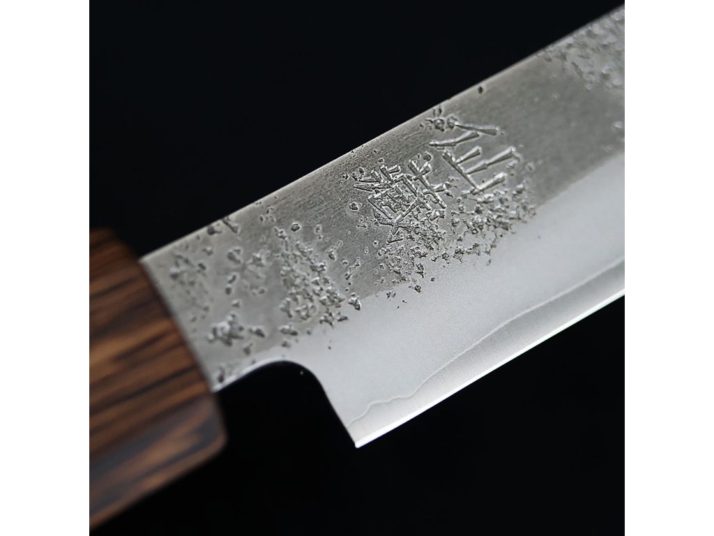 Tradiční japonské kuchyňské nože, které přinášejí nádech nostalgie a mistrovské řemeslné zpracování. Čepel je vyrobena z oblíbeného materiálu Gin-san (Silver 3), což je vysoce kvalitní uhlíková ocel ze slitinové řady Yasuki steel. Tato ocel s tvrdostí HRC 60 se vyznačuje vynikající ostrostí, snadným broušením a dlouhou životností, což ocení jak profesionální kuchaři, tak domácí nadšenci vaření.
