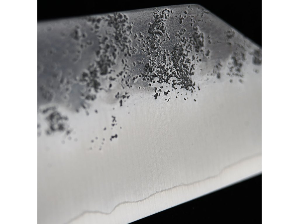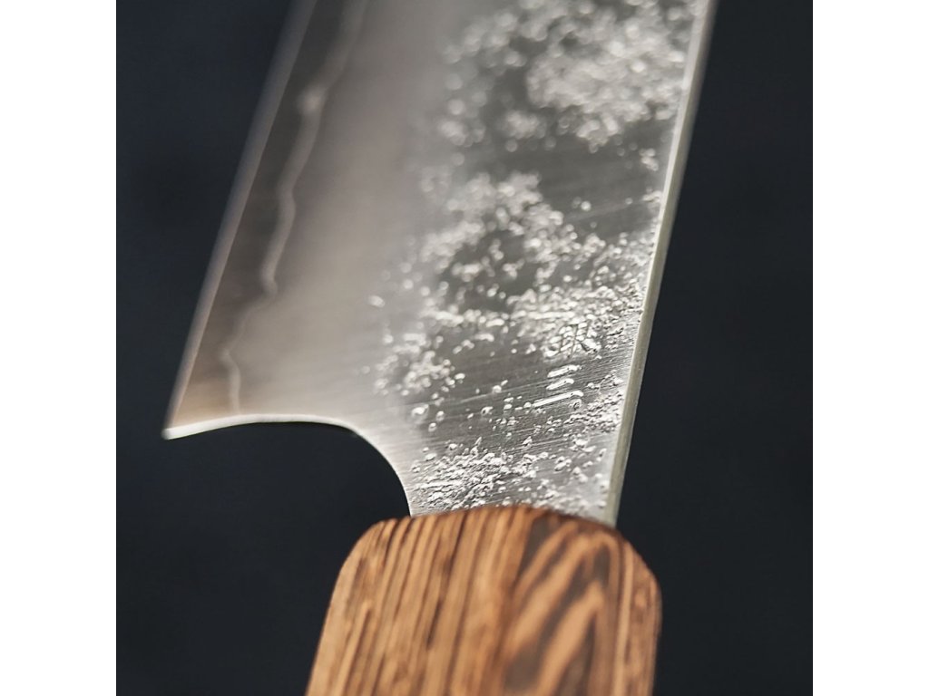 Povrch čepele zdobí tradiční vzor Nashiji, který připomíná rustikální texturu hruškové slupky a dodává noži autentický retro vzhled inspirovaný japonským designem minulých desetiletí. Tato úprava nejen podtrhuje estetiku nože, ale také snižuje přilnavost potravin k čepeli.