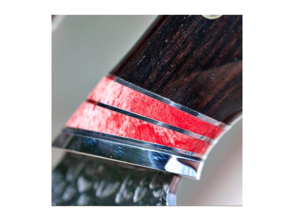 Upozornění Každý nůž je vyroben z přírodních materiálů. Každý kus oceli je originální a nenapodobitelný, proto Váš nůž nemusí vypadat přesně tak jak na fotografii. Nůž, který obdržíte, bude stejně kvalitní a detailně opracovaný, ale může se mírně lišit. |