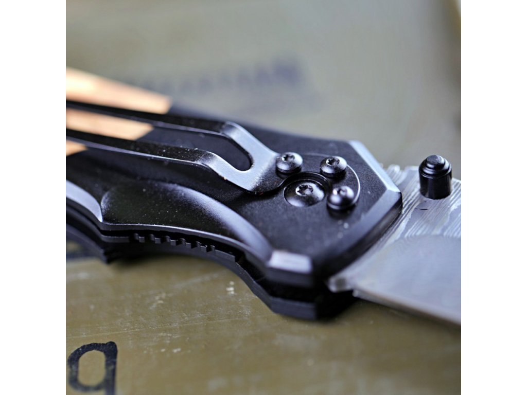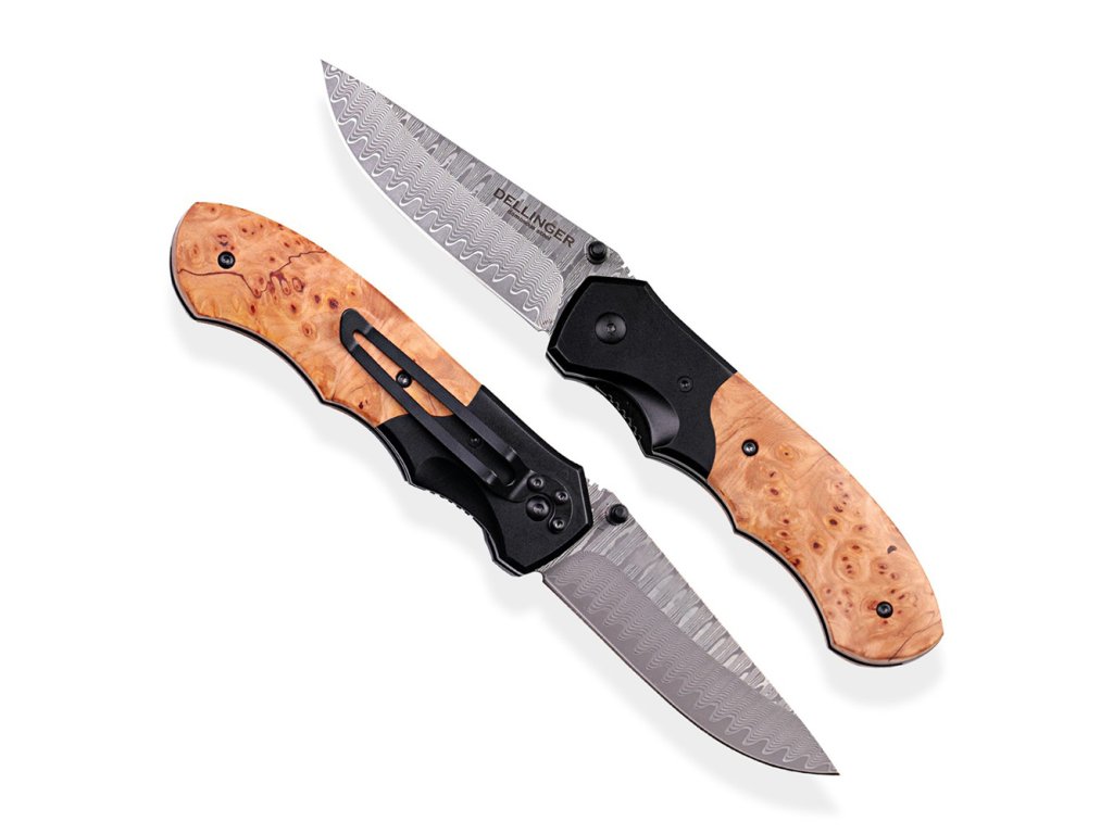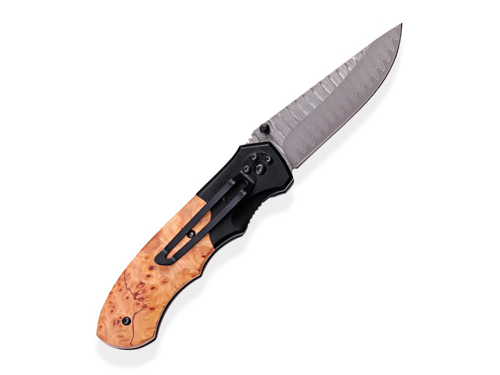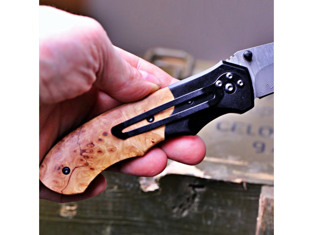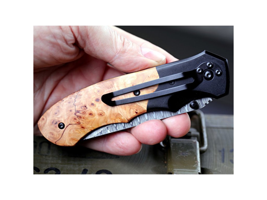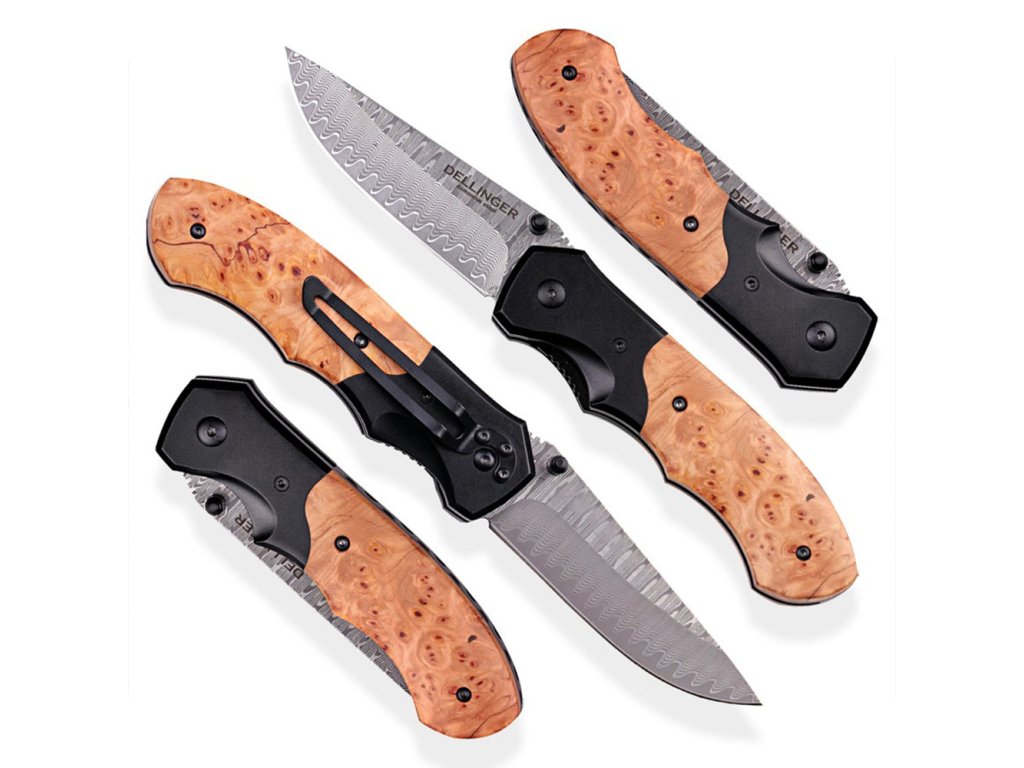 lovecký zavírací nůž & nůž Dellinger Hunter Poplar Burl & nerezová damašková ocel & rukojeť z topolového dřeva & v bambusové krabičce