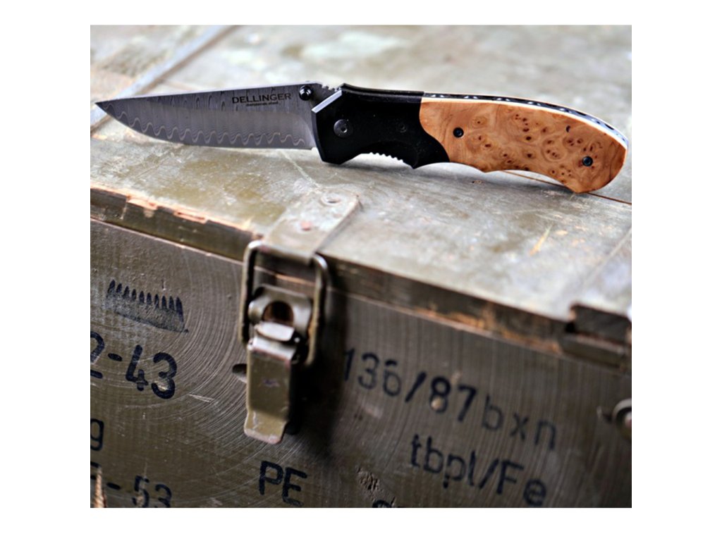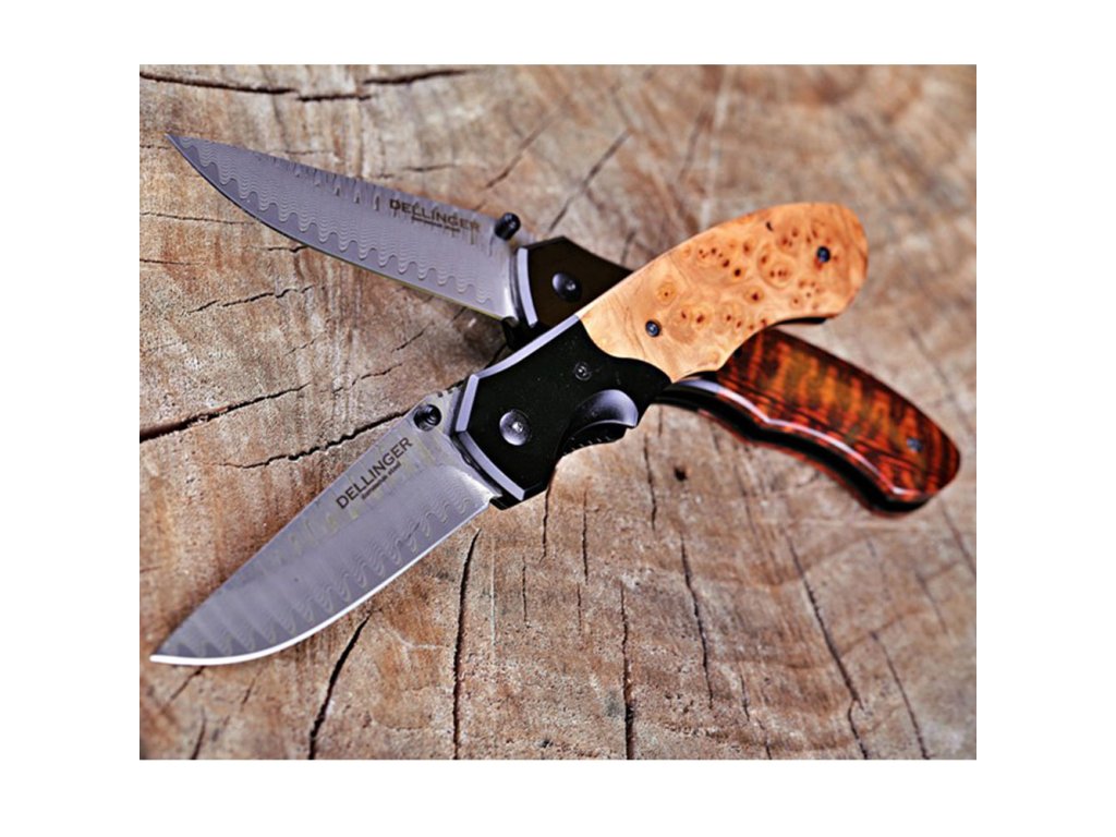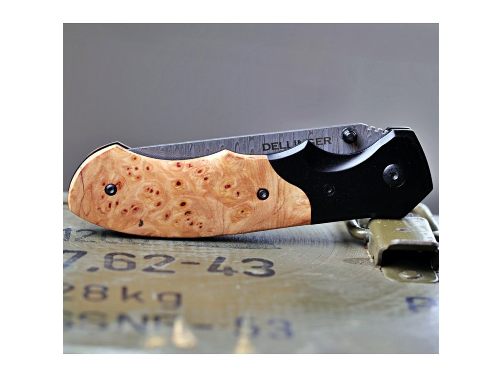 Lovecký zavírací damaškový nůž Dellinger Hunter Poplar Burl