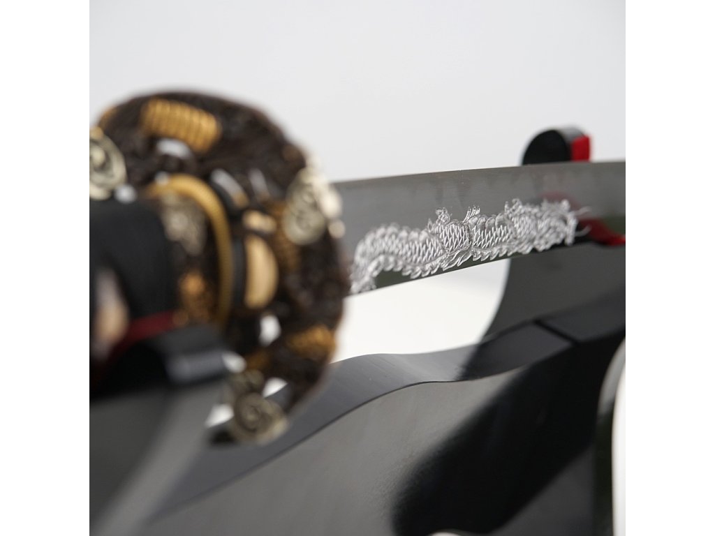 Kovaná katana Doragon z oceli T-10, s reálným hamonem Gunome a rytinou draka