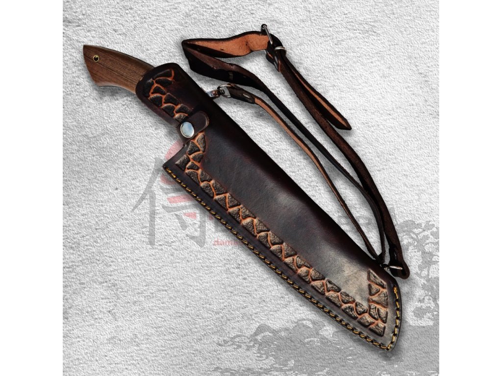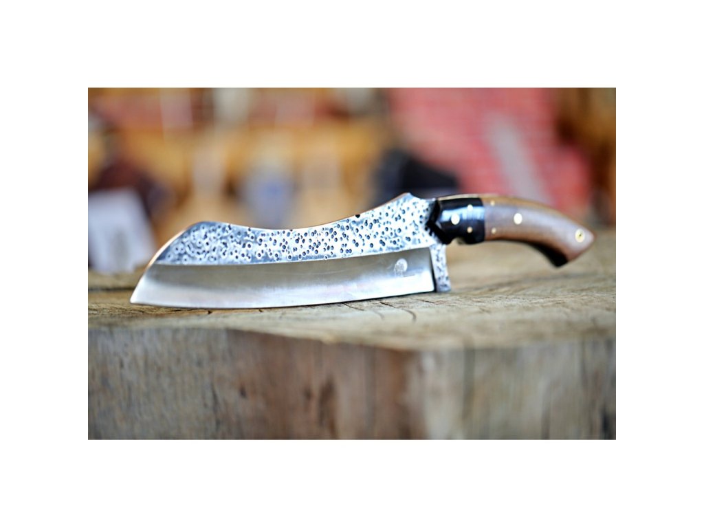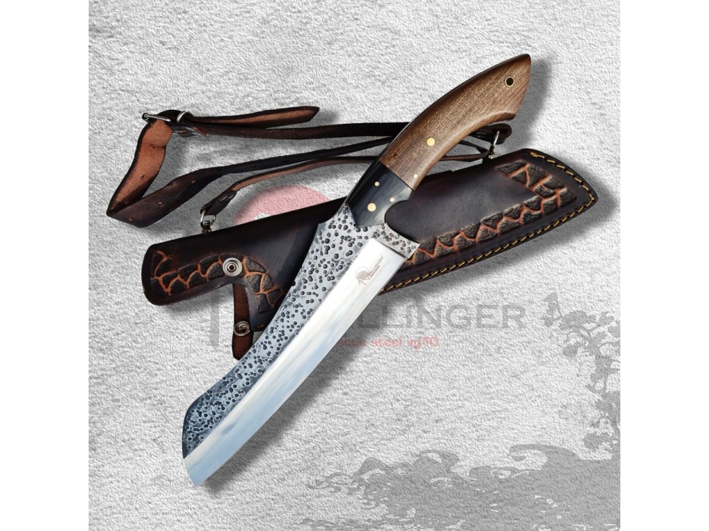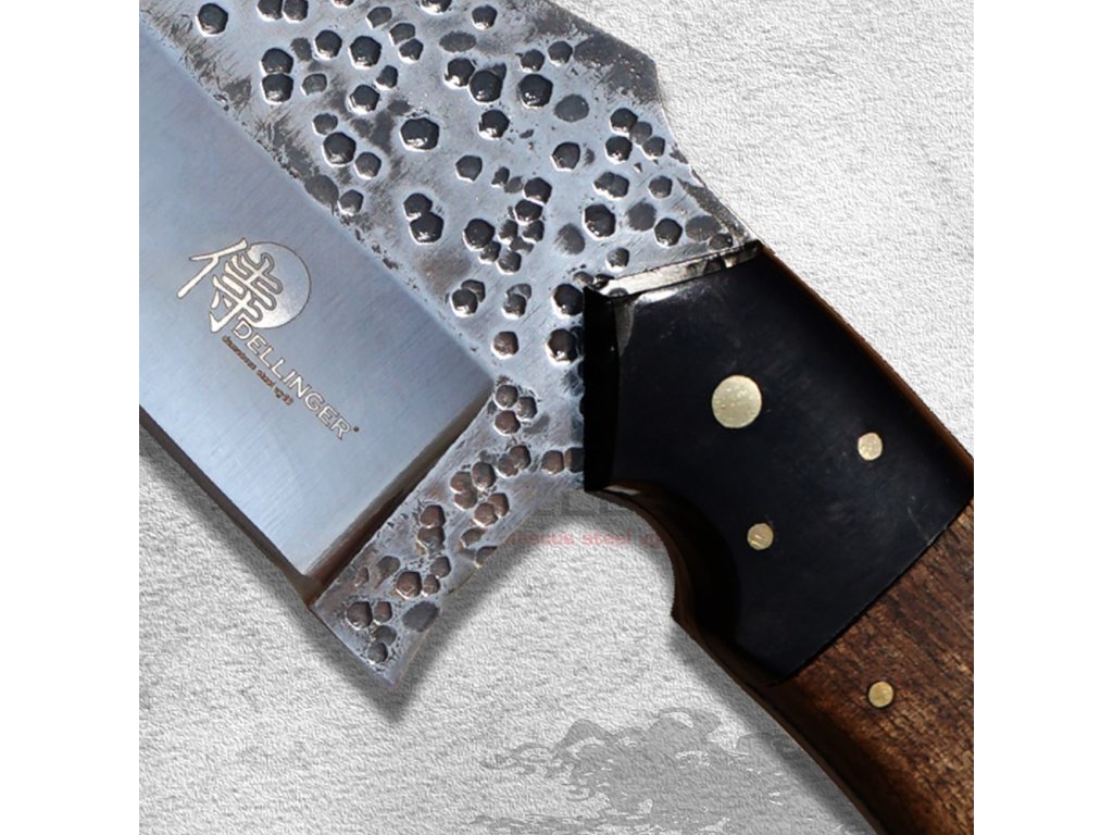 Exkluzivní mačeta Dellinger Executive představuje vrcholný nástroj pro ty, kteří hledají nekompromisní výkon a luxusní design. Je ručně kovaná z vysoce kvalitní nástrojové oceli D2, která je známá svou extrémní odolností a schopností držet ostří i při náročném sekání. Rukojeť kombinuje krásu ořechového dřeva s elegancí buvolího rohu, což z každého kusu činí unikát.