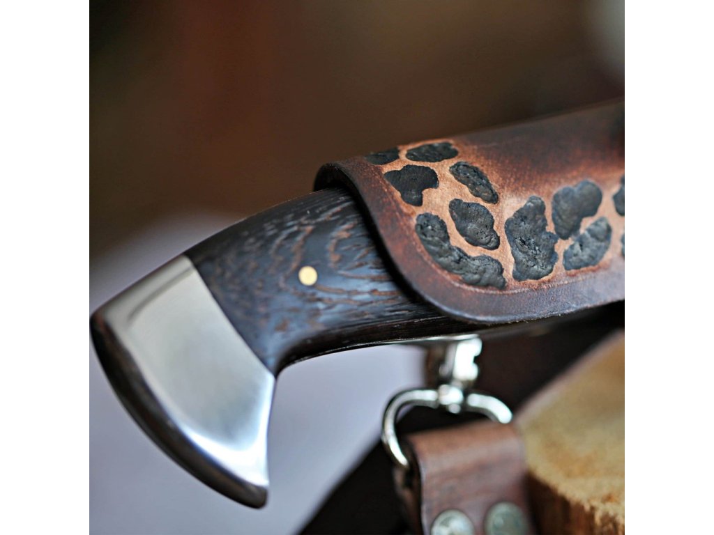 Kovaná mačeta Hacke Chopper D2 s čepelí z nástrojové oceli D2 s povrchovou úpravou black stonewashed, s rukojetí ze dřeva Wenge. Ostrá a odolná, ideální ke grilu, na zahradu i outdoor dobrodružství a survival. Dodávána s koženým pouzdrem.