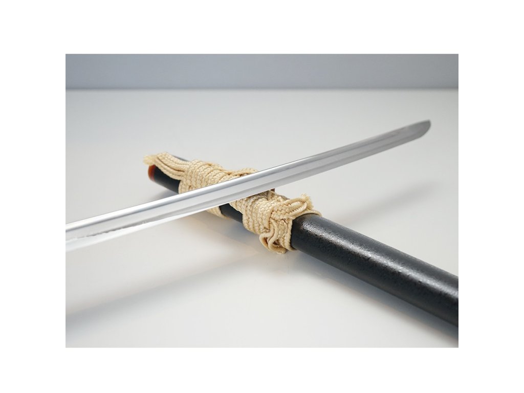 Tsuka (rukojeť) | dřevěné jádro, oplet tsuka maki je z jelenice v obvyklém stylu hineri maki. Čepel je zajištěna 2 bambusovými kolíky "mekugi". |