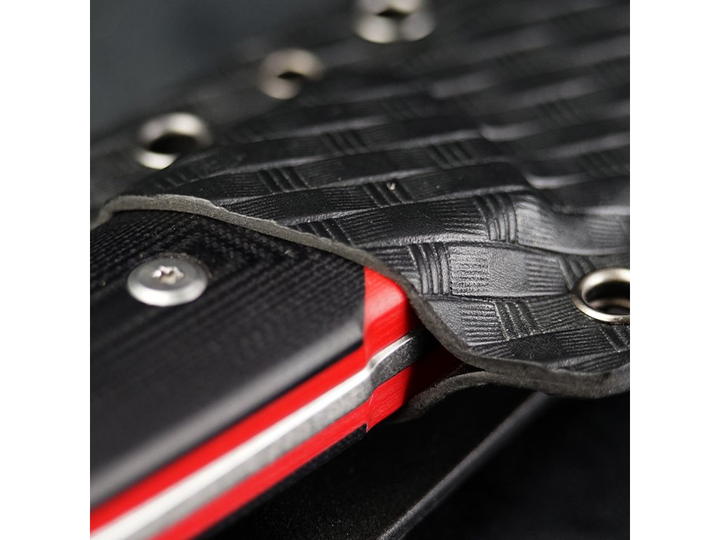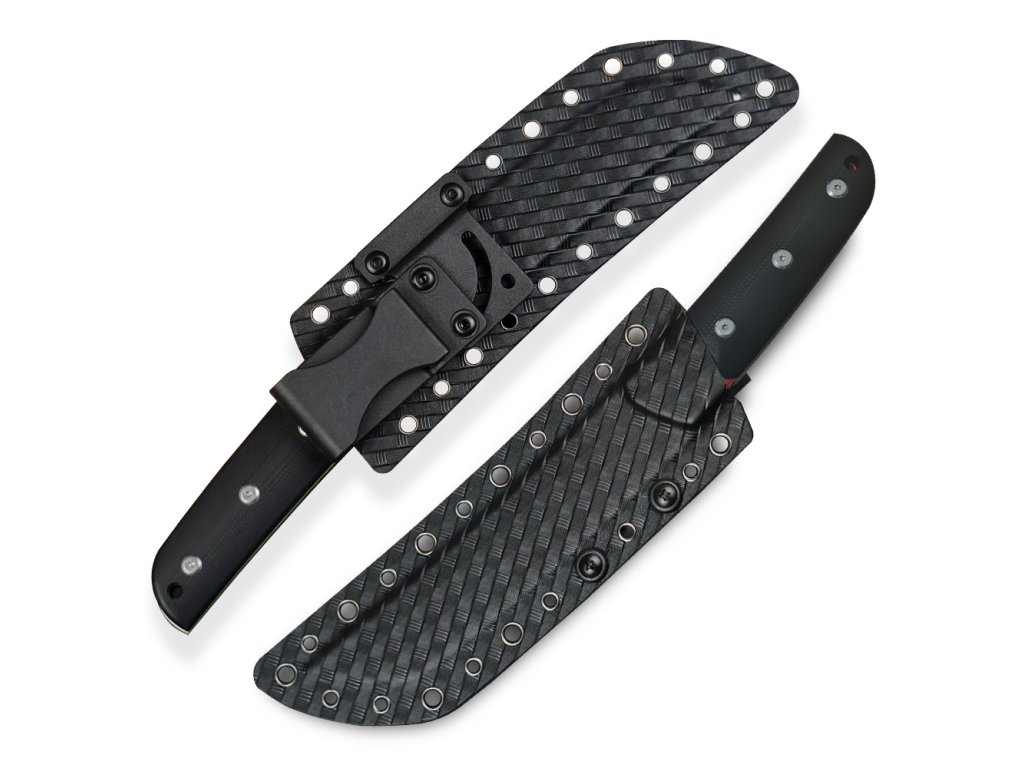 Nůž je vybaven kydexovým pouzdrem, které je často používáno pro extrémní a taktické prostředí. Je vyrobeno z materiálu nazývaného Kydex, což je termoplastický polymer s vysokou pevností a odolností. Tento materiál je oblíbený díky své schopnosti udržet pevný tvar a odolat opotřebení i za extrémních podmínek. Pouzdro je navrženo tak, aby drželo nůž bezpečně a pevně na místě, aniž by mu způsobovalo poškození. Materiál Kydex je flexibilní a přizpůsobivý, což umožňuje přesné přilnutí k noži a zajištění jeho stability.