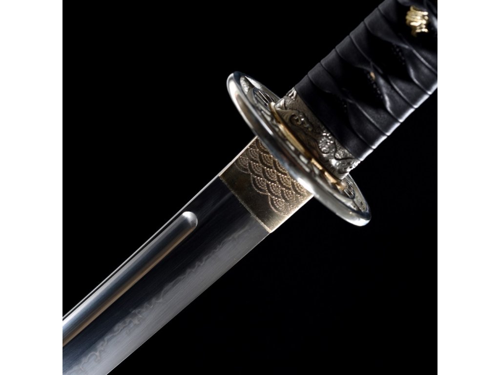 Výrazný reálný Choji hamon je tvořen dle dávných tradičních metod, které vychází z mnohaletých zkušeností kovářského mistra, který výrobou této nádherné zbraně strávil několik dnů. Vše na tomto meči je individuálně zhotoveno, včetně saye a habaki, jsou použity nejkvalitnější komponenty, včetně špičkového laku na sayu a skutečné rejnočí kůže nejvyšší kvality. Jedná se o špičkovou repliku samurajského meče, která je vhodná k sekovým zkouškám a lze ji rozložit na jednotlivé části. Tato čepel byla vyzkoušena a testována tak, aby odstranila vše co jí stojí v cestě ! Sori (zakřivení čepele) je speciálně navrženo tak, aby bylo dosaženo co možná nejjemnějších a nejčistších řezů. To vše v kombinaci s výběrem tradičního kovaného Koshirae zaručuje, že získáte to nejlepší z hlediska vzhledu i funkčnosti. Uhlíková ocel T-10 má působivou tvrdost HRC 58 - perfektní kombinace této tvrdosti je podtrženo zakřivením čepele Sori, které umožňuje snadné přeseknutí tatami, slaměné rohože, nebo bambusu pro tameshigiri. Full tang konstrukce této katany výrazně zvyšuje sílu meče. Čepel je typu shinogi-zukuri, tento typ čepele se vyrábí od 10.století našeho letopočtu. Hrot meče ko kissaki se skutečným Diamond-Shaped Yokote, které je velmi dobře definováno tím, že hamon prochází po celé délce přes Boshi. Yokote je velmi důležité pro strukturální integritu špičky meče. Pomáhá absorbovat otřes, rozptýlí sílu a přispívá k stabilitě a síle meče při tzv. sekořezu. Tato katana (samurajský meč) je vhodná na použití v praxi, firma Dellinger se však zříká jakékoliv odpovědnosti za zranění a poškození vzniklá při použití. Schraňujte mimo dosah dětí ! Jakákoliv manipulace se samurajským mečem je na vaší vlastní odpovědnost. Nezapomeňte, že máte ve svých rukou smrtící zbraň !