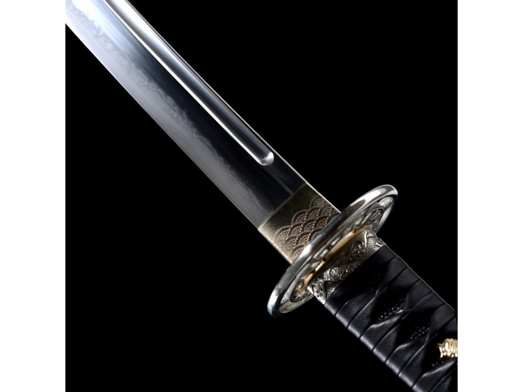 Ručně kovaná čepel z oceli T-10 té nejvyšší kvality. Ocel byla laminována v monokompositní konfiguraci Maru - diferenciálně tvrzená. Uhlíková ocel T-10 (obsah 1,1% uhlíku a 0,4% manganu) je velmi pevná a skvěle drží ostrost. Čepel bez se žlábkem bo-hi byla ve finální fázi ručně leštěna kamenem hazuya - tím je dosaženo téměř žiletkového ostří (razor sharp) a zrcadlového lesku.