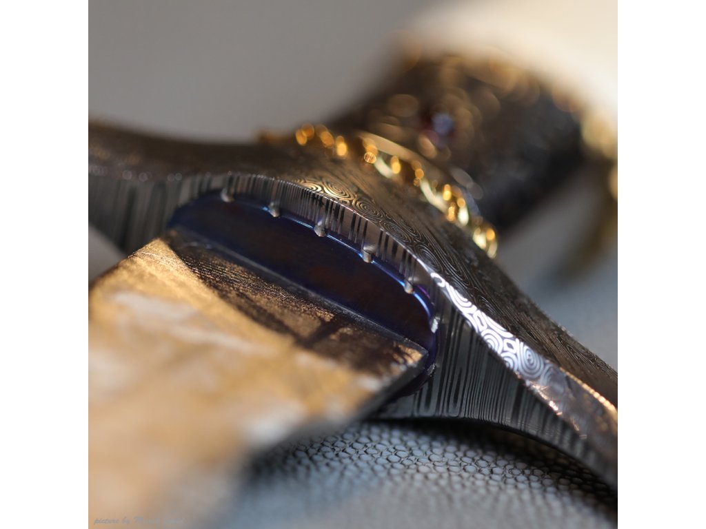 Materiál rukojeti (střenka) více jak 10.000 let stará fosilie mamutího klu, která byla nalezena na území Sibiře. Je to vzácný a okouzlující materiál. Pouhým dotykem ucítíte poslední odkaz legendárního stvoření, které putovalo po Zemi na úsvitu lidstva.