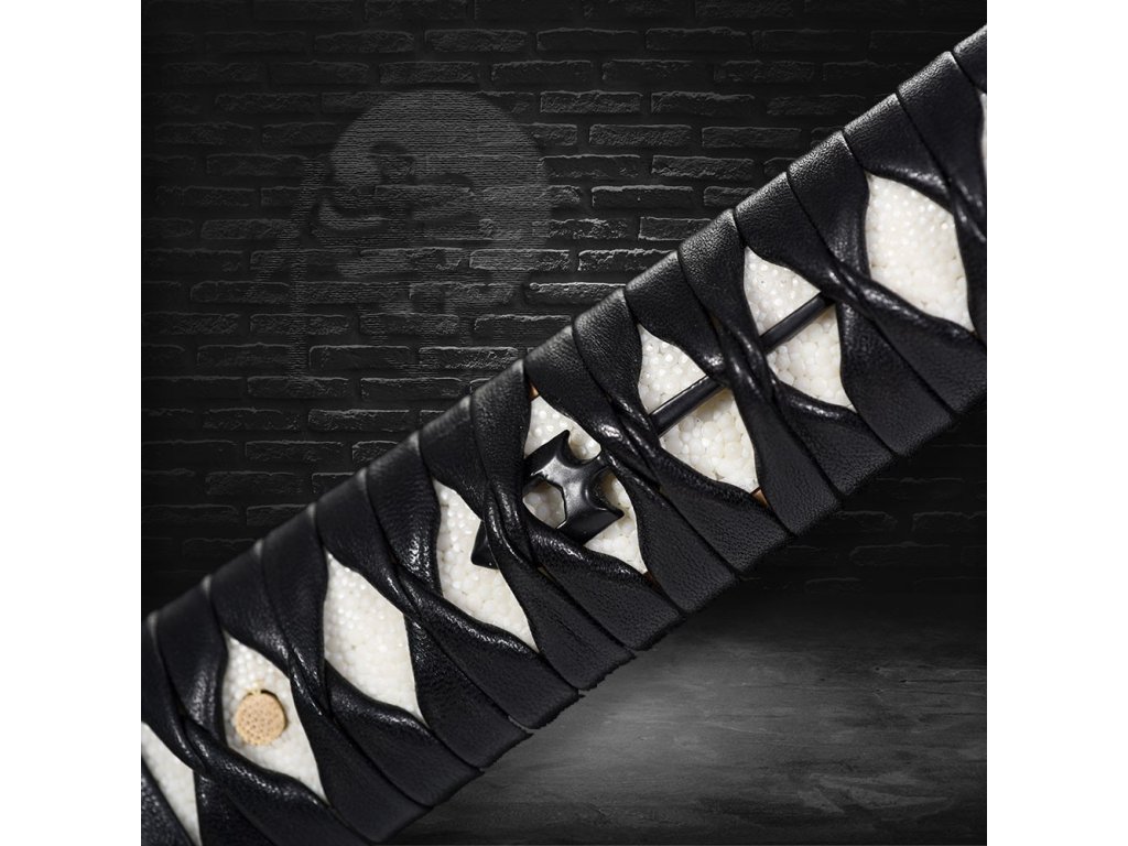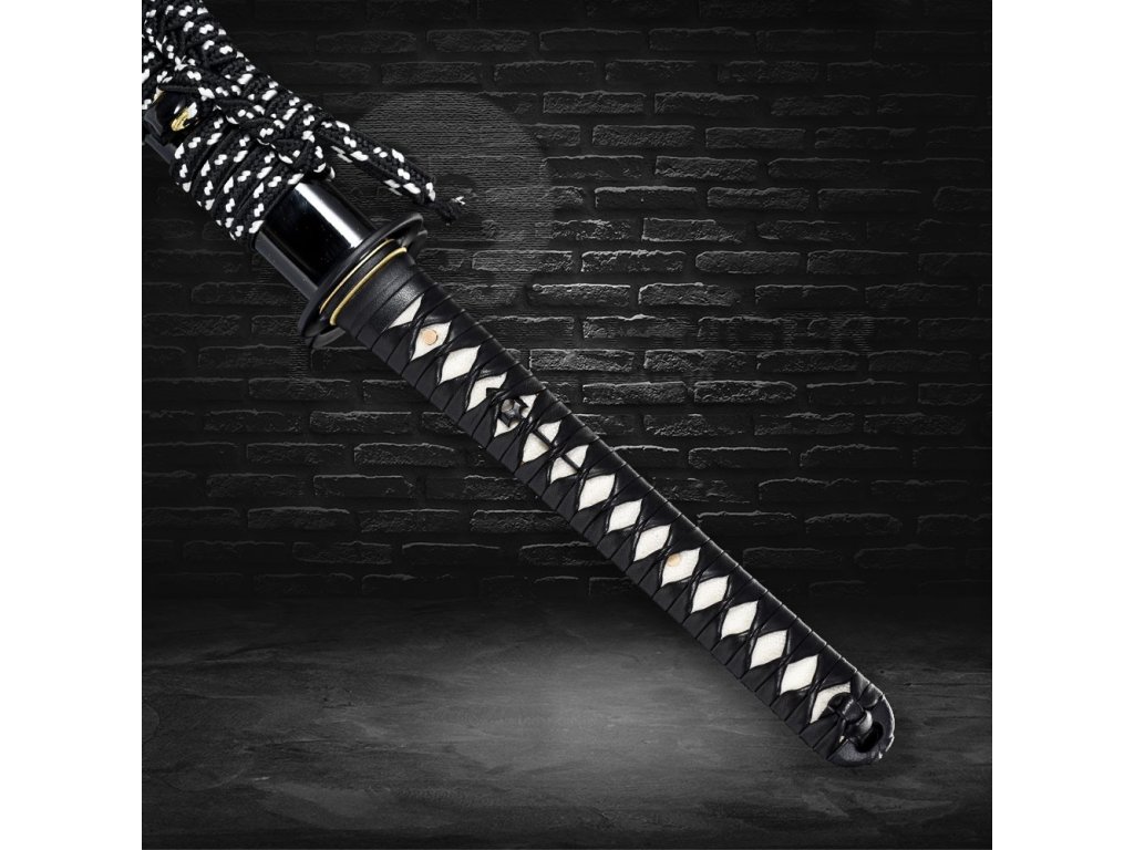 • Tsuka (rukojeť) - dřevěné jádro, potažena pravou rejnočí kůží (Samegawa), s černou koženou omotávkou ITO. Čepel zajištěna 2 bambusovými kolíky "mekugi".