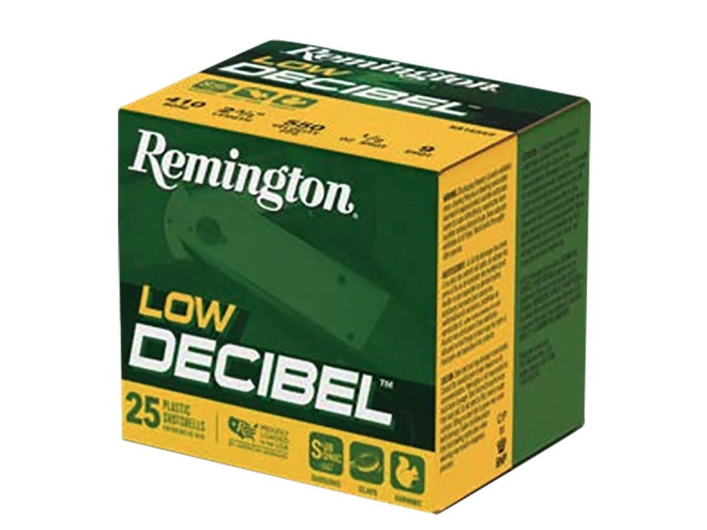 Remington Low Decibel .410 Bore je nejlepší volbou pro subsonické brokové střelivo této ráže. S úsťovou rychlostí 650 ,fps nabízí snížený zpětný ráz a menší hluk, aniž by ztrácel na účinnosti, což z něj činí ideální volbu pro blízké cíle a zábavnou střelbu.