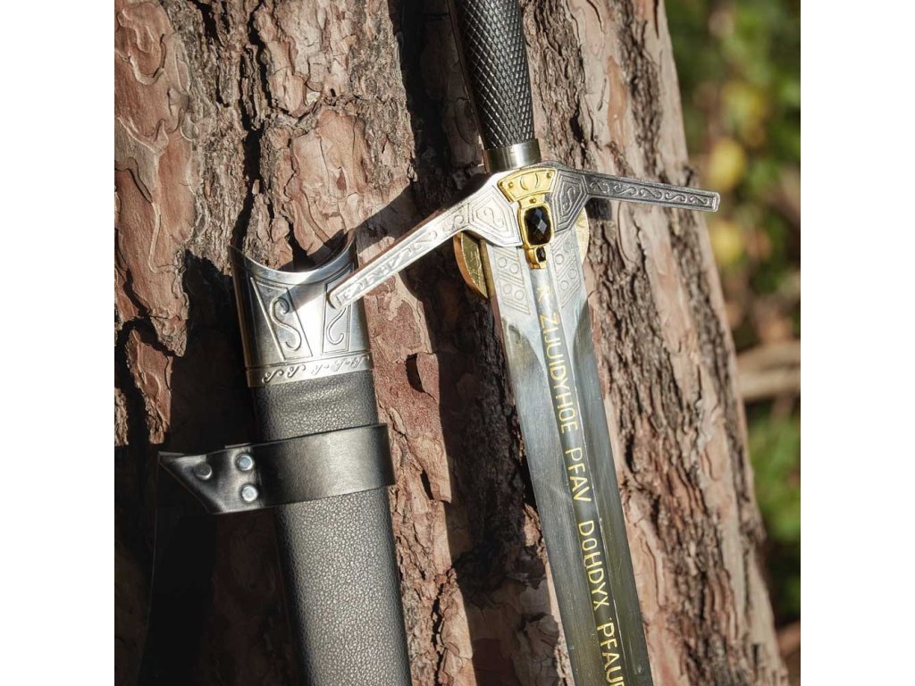 Tento kvalitně zpracovaný meč je věrnou replikou ikonické zbraně Geralta z Rivie ze seriálového zpracování Zaklínače na Netflixu. Čepel o délce 80 cm je vyrobena z uhlíkové oceli AISI 1095 a je vybavená charakteristickým krevním žlabem, ve kterém je vyryt dekorativní nápis inspirovaný prastarou Elder Speech ze zaklínačského světa.