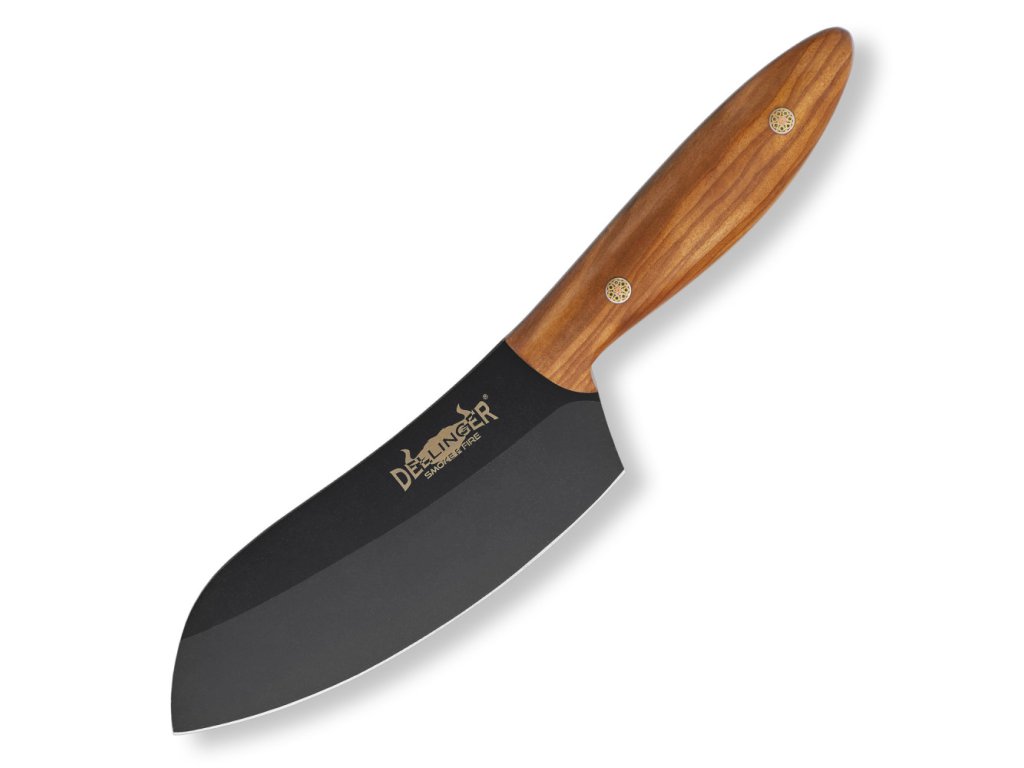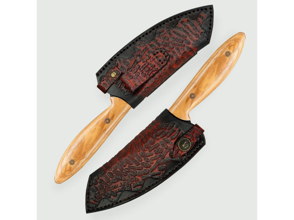 Robustní BBQ nůž s čepelí z oceli D2 Black Coating a rukojetí z olivového dřeva pro maximální ostrost a odolnost. Dodáván s koženým pouzdrem pro bezpečné uložení. Délka ostří 165 mm.
