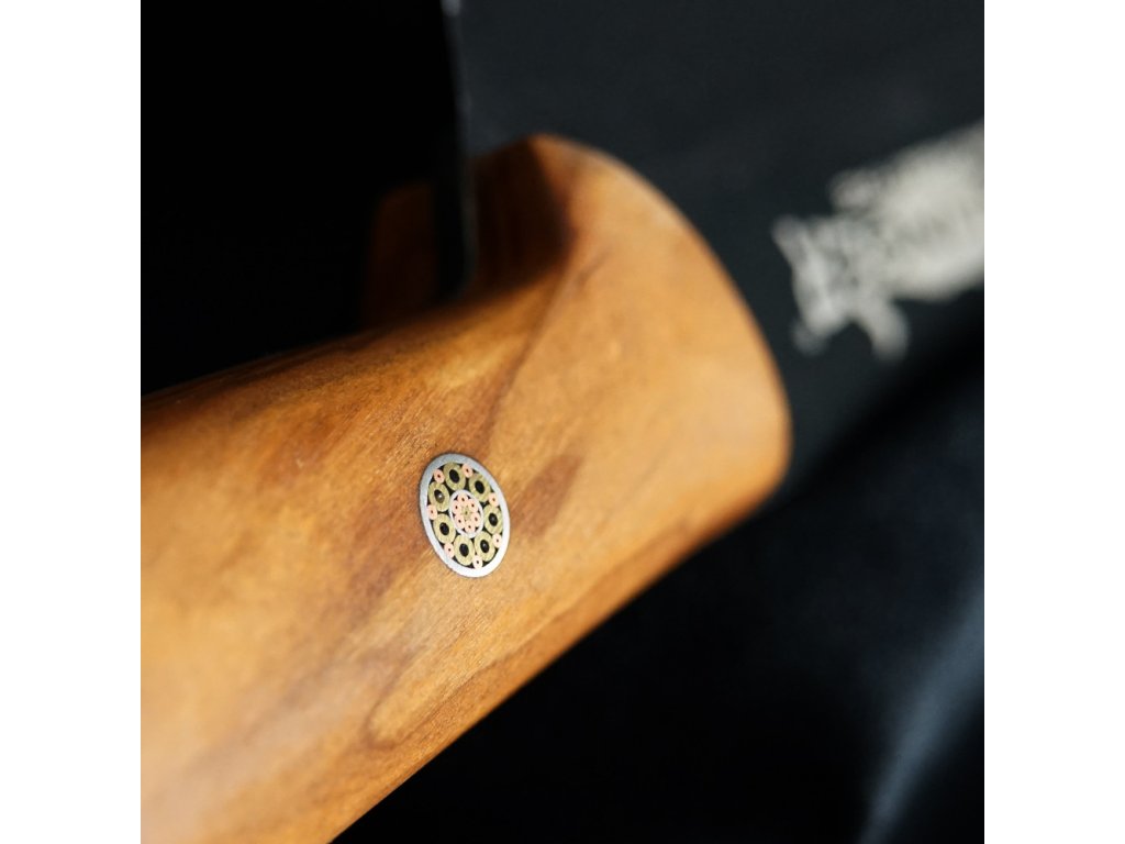 Masivní rukojeť pro pořádný chlapy je vyrobena z překrásného olivového dřeva a je ozdobena dvěma okrasnými nýty. Vždy je pečlivě ručně leštěná, ergonomicky tvarovaná a navržena pro vynikající ruční ovládání. Olivové dřevo je barevně velmi atraktivní a velmi žádané. Je vyhledáváno zejména výrobci nožů a umělci. Dřevo lze krásně leštit, je pevné a tvrdé. Olivové dřevo lze nazvat také jako "krása, která nestárne".