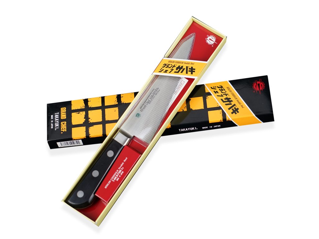 Japonský nůž šéfkuchaře Sabaki Honesuki Grand Chef Takayuki je ideální pro manévrování kolem kostí, ořezávání a přesné řezy v úzkých místech při dělení masa a vykosťování. Čepel je vyrobena ze švédské nerezové oceli BOHLER-UDDEHOLM. Délka čepele 150 mm, západní rukojeť POM se třemi nýty.