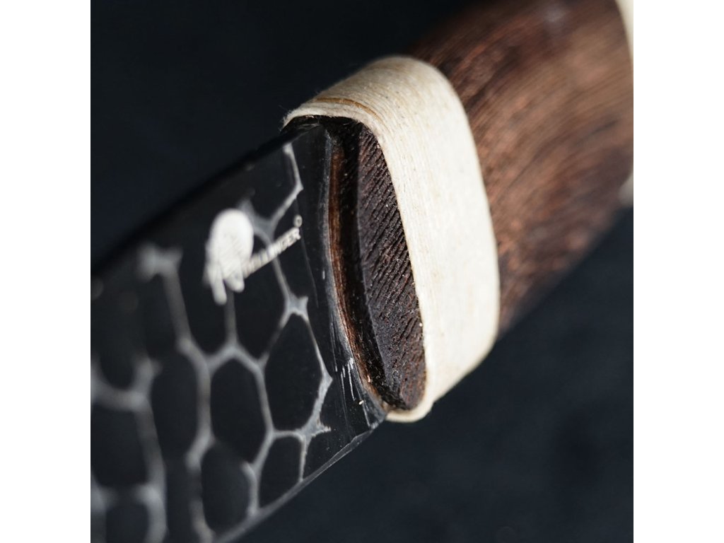 - Čepel: Vyrobena z oceli D2 s unikátní „obsidiánovou“ texturou, která připomíná ručně štípaný kámen.
