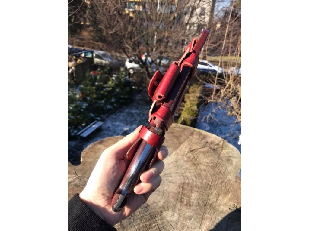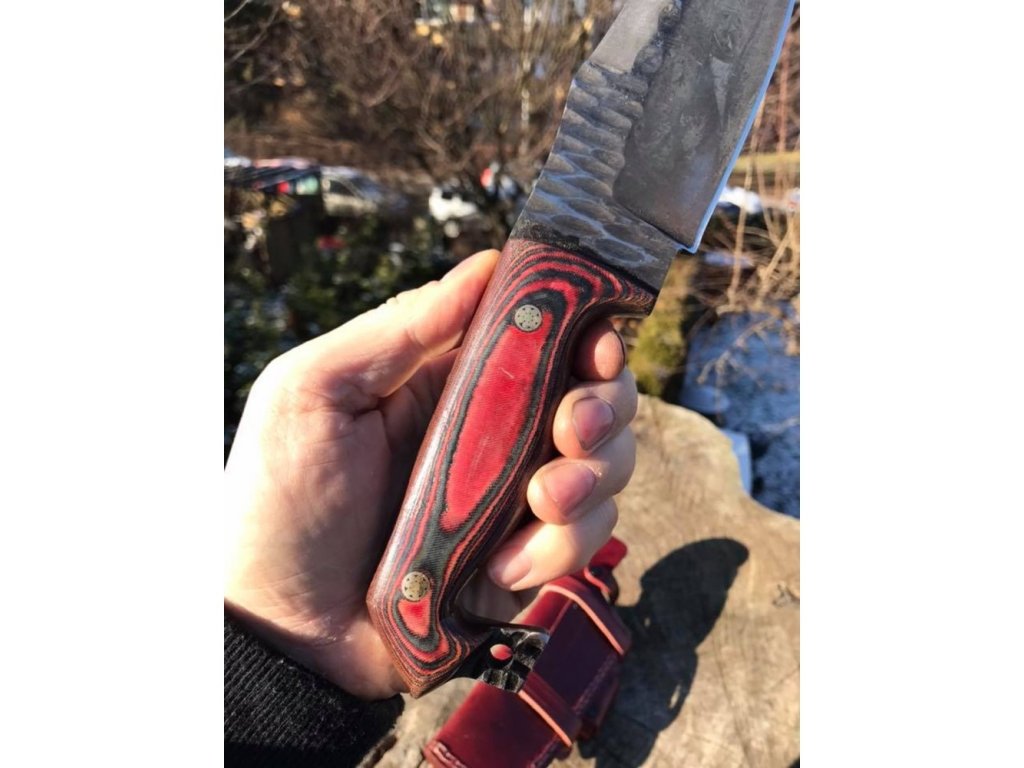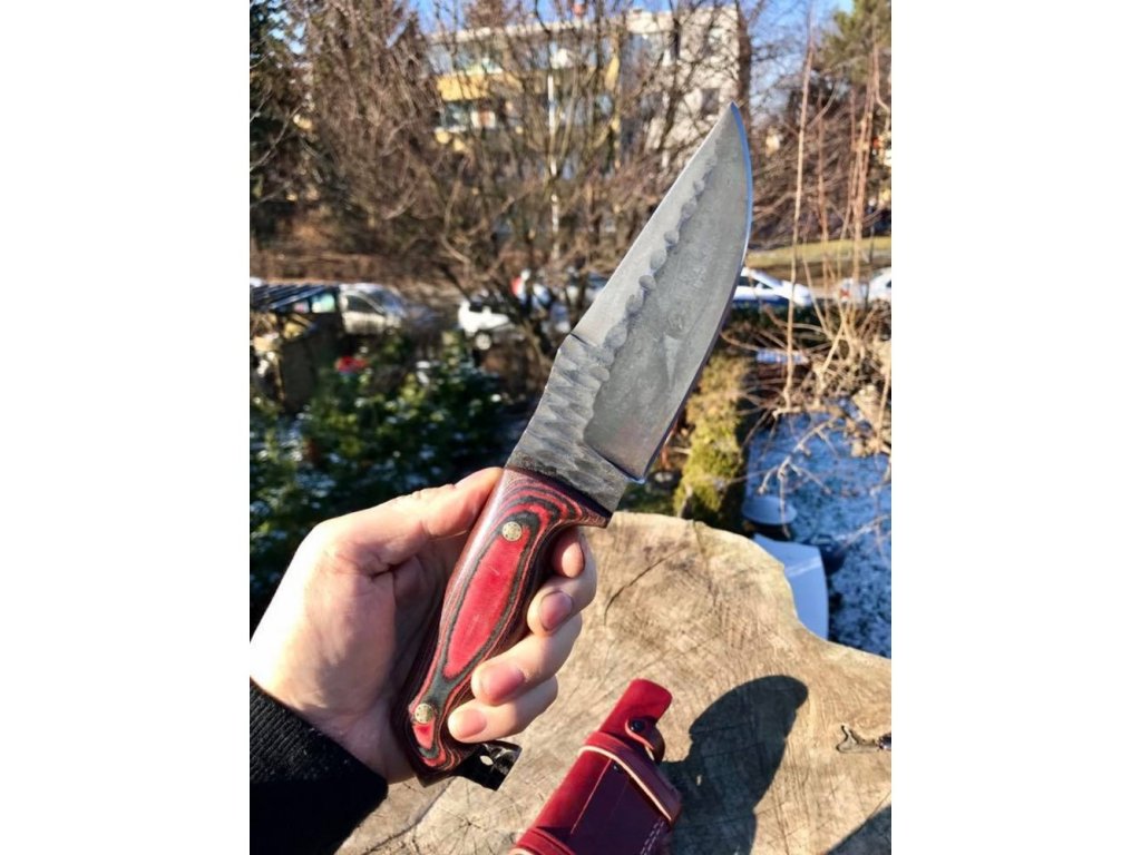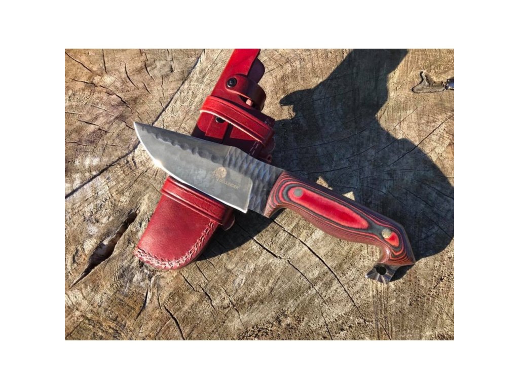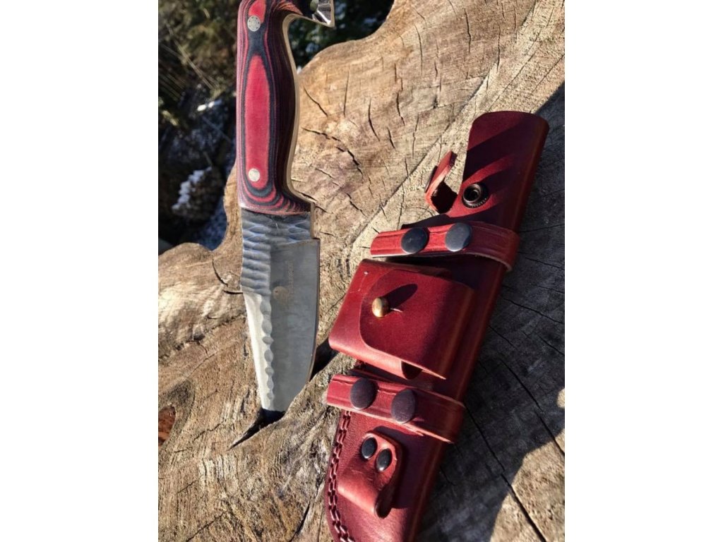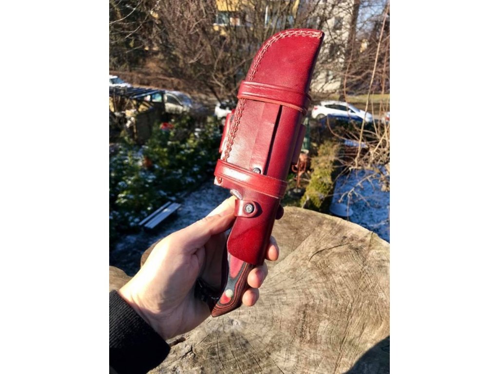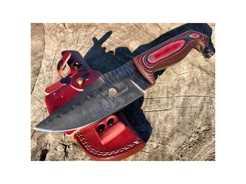 pevný bojový nůž & Dellinger Red Escape & ocel D2 & kožené pouzdro