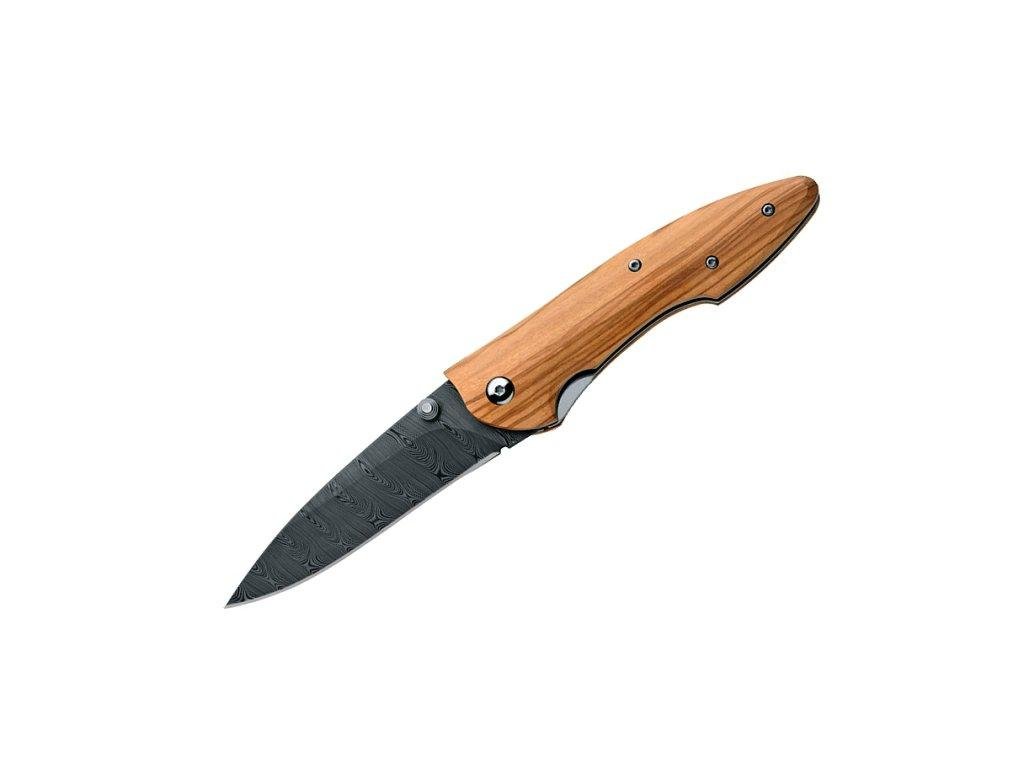 Oblíbený nůž z designové řady Elschewitz, tentokráte se střenkou z olivového dřeva. Čepel z damaškové oceli Super Sense Twin, délka čepele 9 cm, tloušťka čepele 3 mm, celková délka 20 cm, kolíček na snažší otevření jednou rukou. Pojistka spodní tlačná. Dárkové balení v krabičce s malým pouzdrem. Hmotnost nože 95g.