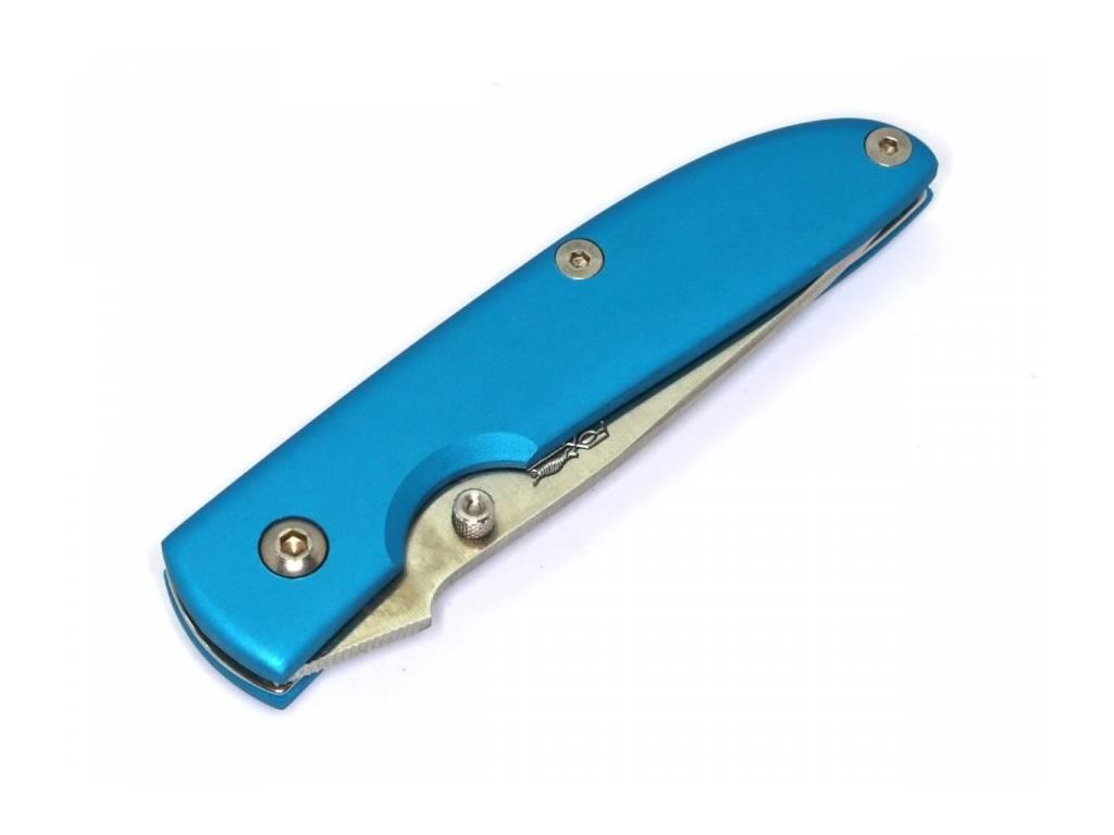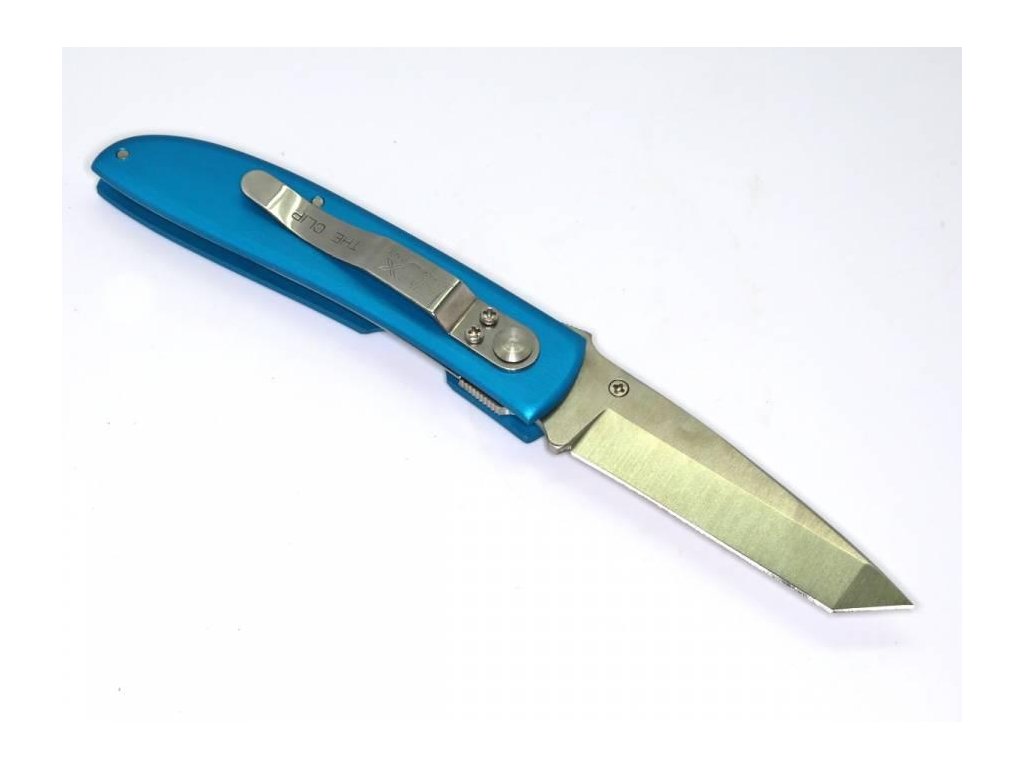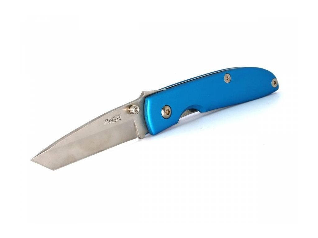 Celokovový zavírací nůž s čepelí typu TANTO, délka 8 cm, délka v zavřeném stavu 11 cm, délka otevřeného nože 19 cm, hmotnost 95 g. Čepel z oceli 440C, tvrdost 57-59 HRC.”One hand” systém. Střenka - anodizovaný letecký dural. Provedení modrá.