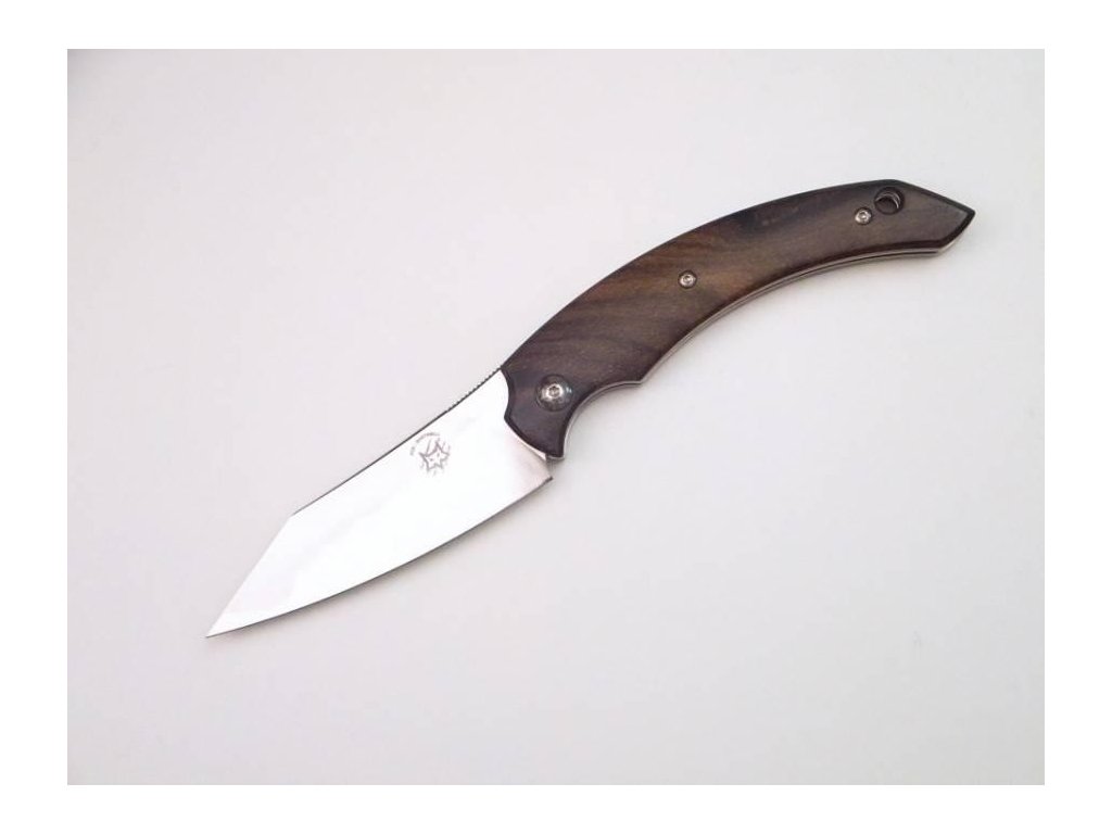 Zavírací nůž s ostruhou na jednodušší otevření jednou rukou se zajímavým tvarem čepele a střenkou z tvrdého dřeva obduže (kordie), známého pod názvem zircote wood (výskyt ve střední Americe). Kožené pouzdro, hmotnost 80 gramů.