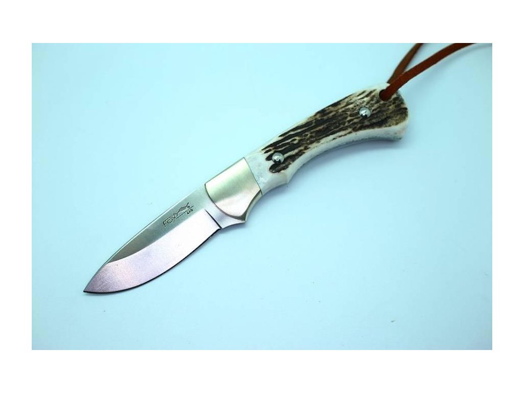 Lovecký nůž s pevnou čepelí, tvarově vycházející z velmi oblíbeného nože FOX 594, vyráběného od počátku firmy. Limitovaná edice, vydaná ke 40. výročí založení firmy Oreste Frati - FOX se střenkou z pravého parohu a pouzdrem z hrubé, přírodní kůže.
