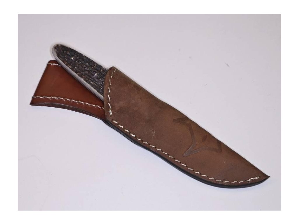 Lovecký nůž s pevnou čepelí, vycházející z designu CITADEL v provední se střenkou z pravého parohu. Pouzdro je z přírodní silné, hrubě opracované kůže. Jednorázová série.