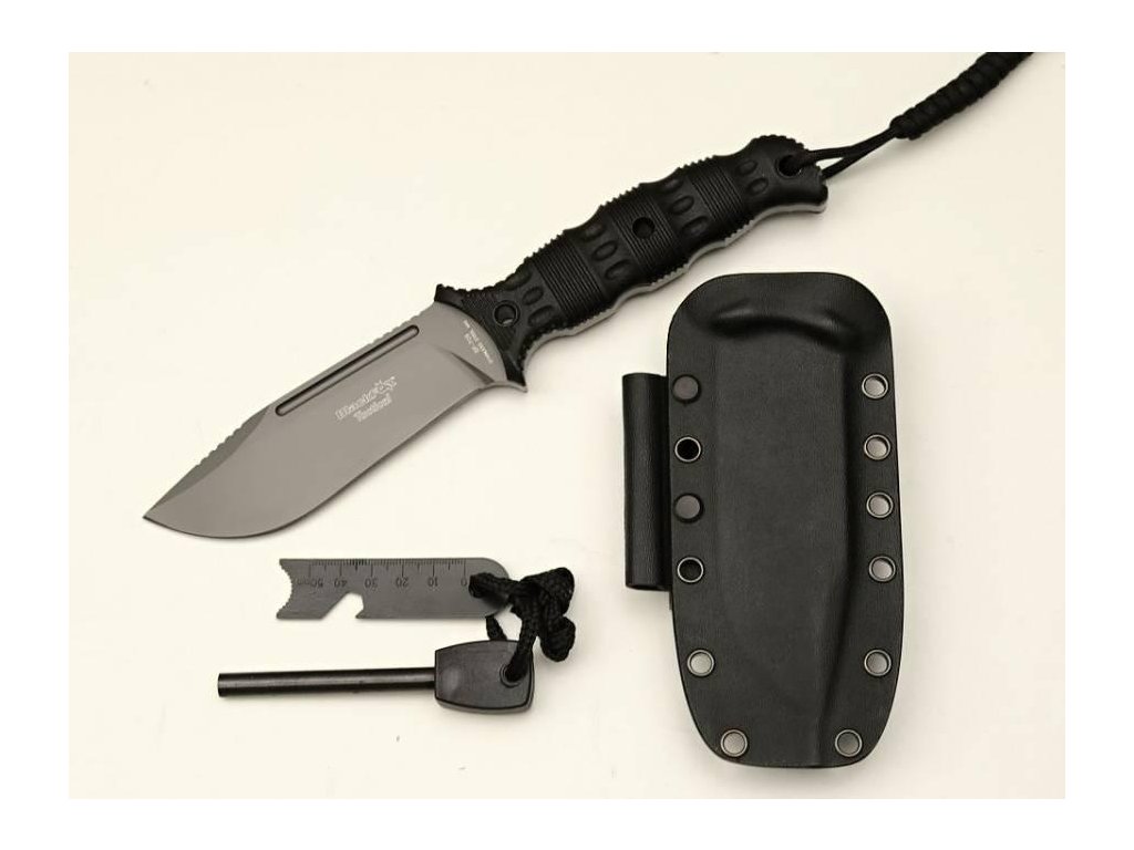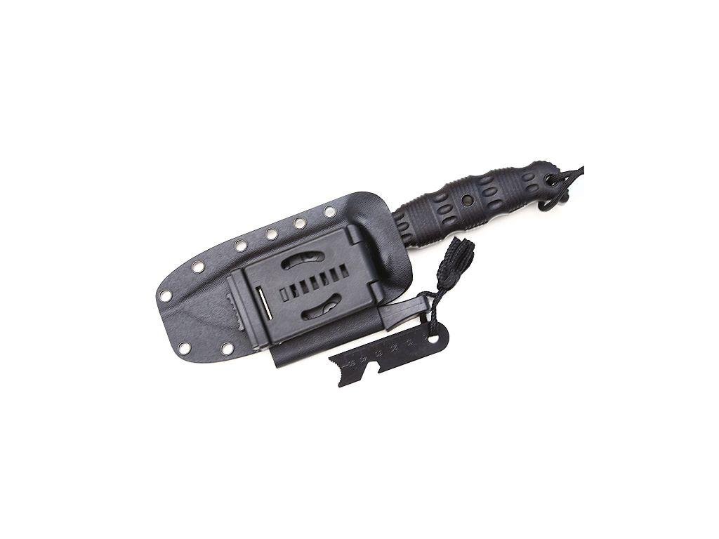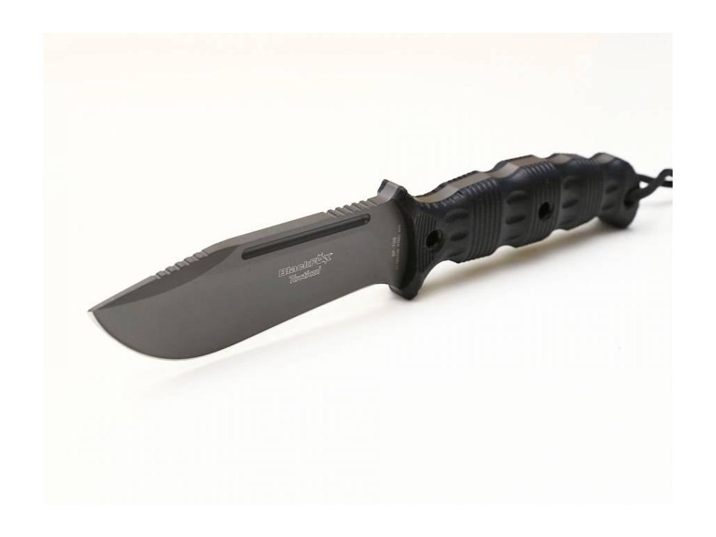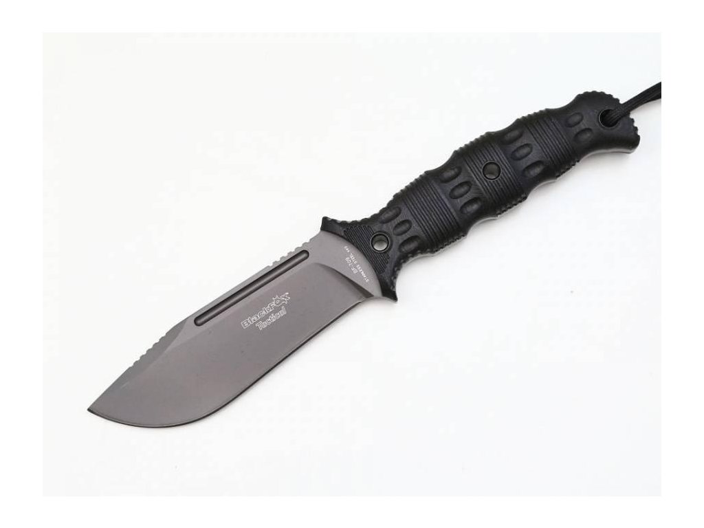Pevný tábornický nůž z řady Black Fox. Mohutná 5mm silná čepel z nožířské oceli 440, střenka z materiálu G10 a s očekm na lanko/provaz. Nůž je dodáván v opaskovém impaxovém pouzdře spolu se škrtátkem na rozdělání ohně, měřítkem a otvírákem na lahve.