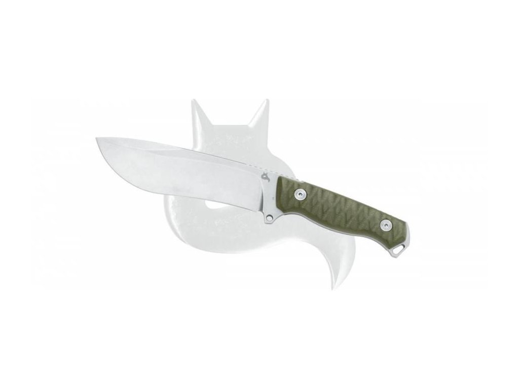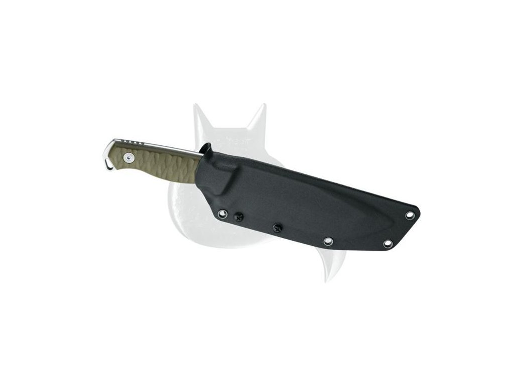 Robustní nůž s pevnou průběžnou čepelí, s hmotností 290 gramů a délkou čepele 14 cm, dodává se s plastovým pouzdrem, které lze připnout na pásek.