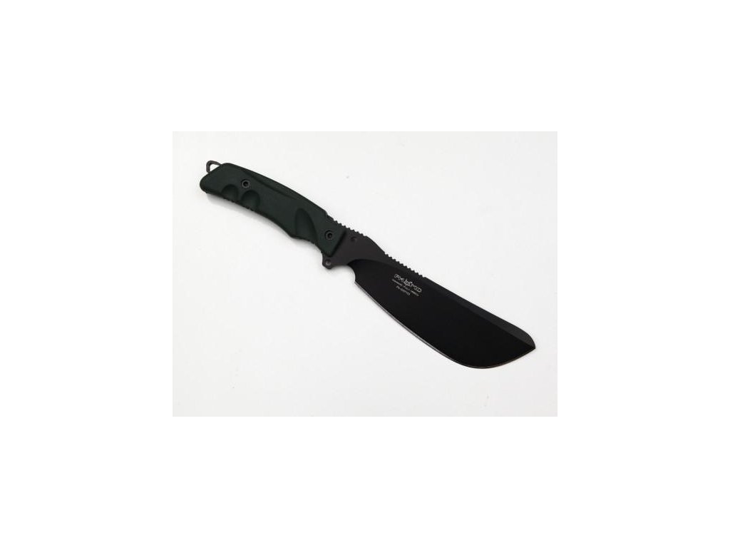 Nůž na pomezí nože a mačety pro použití v přírodě. Čepel o síle 6mm z cobal vanadiové oceli N690Co s tvrdostí HRC 58-60. Střenka z materiálu FORPRENE. Celková délka 30cm, délka čepele 17cm, hmotnost 340g, pouzdro z korduty se setem na přežití. (krabička poslední záchrany).