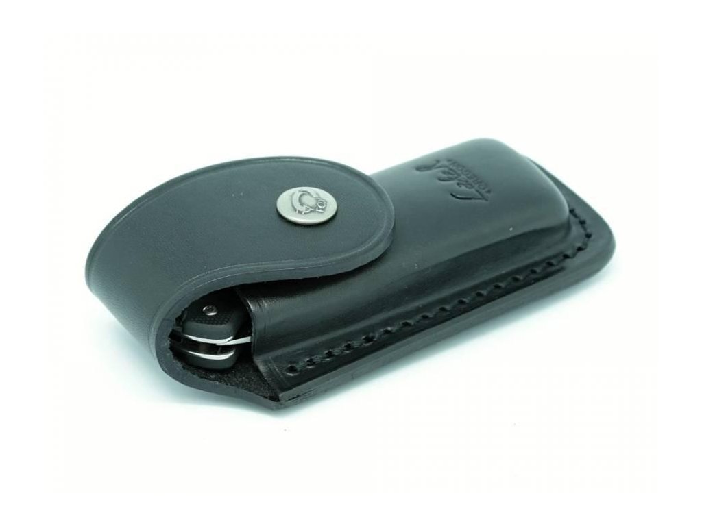 Nůž z designerské dílny Rona Lake. Zavírací nůž technického designu s hřbetní pojistkou a bočním uzamykáním čepele. Střenka z materiálu G10, čepel z nožířské oceli N690Co. Kožené opaskové pouzdro.