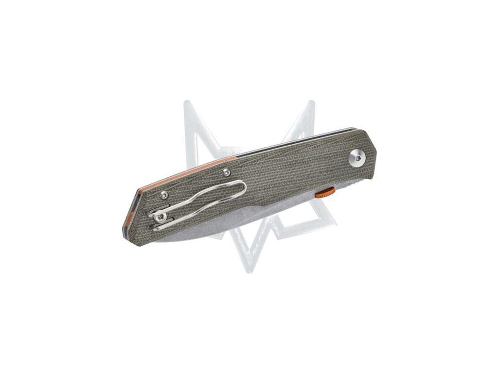 Kapesní zavírací nůž elegantního střihu z dílny nožířského designéra Roberta Terzuoly, vyráběný FOXem v několika variantách. Líbivý nůž má střenku ze strukturované mikarty v military sytě olivové barvě (OD green). Čepel je z nerezové nožířské CrMoNb oceli BECUT s povrchem upraveným pískováním. Pojistka je spodní tlačná, nerezový klip z ohýbaného drátu, doplňky v oranžově anodizovaném duralu. Dodáván je bez pouzdra. Hmotnost 100 gramů.