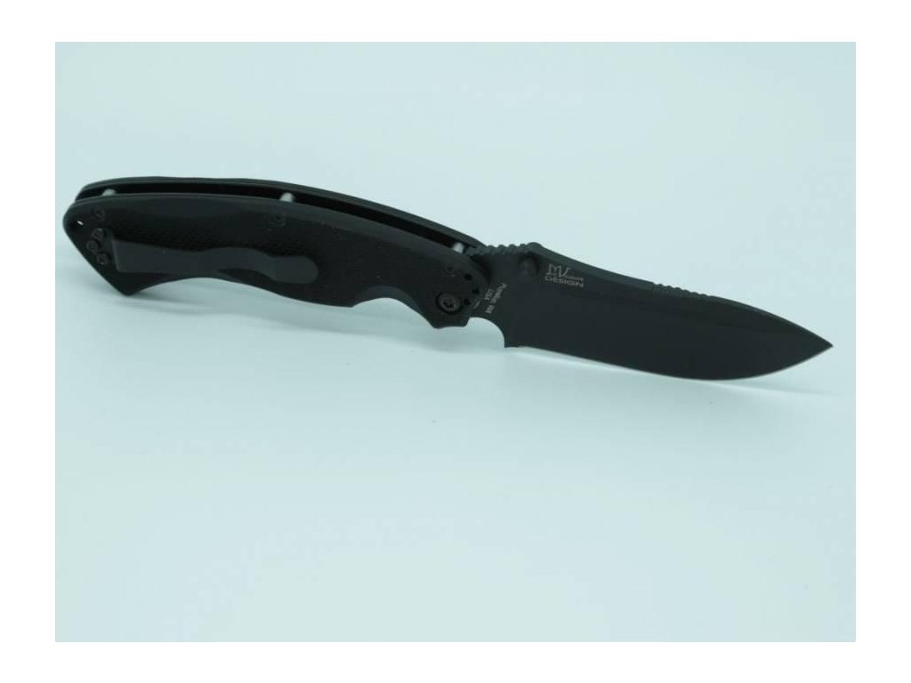 Zavírací celočerný nůž z designérské dílny Mike Vellekampa, vyráběný FOX USA. Čepel je z oceli 154CM, což je prakticky idetická ocel s ATS34, vzniklá modifikaci velmi populární 440. Střenka z materiálu G10, spodní tlačná pojistka, čep na otevírání jednou rukou. Oboustranně nastavitelný klip.