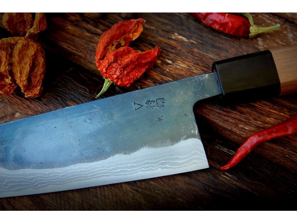 Japonská uhlíková ocel Takefu V special grade 2 není zcela nerezová a proto vyžaduje nadstandardní péči. Nůž je nutné po každém krájení očistit, osušit a potřít olejem. Skvrny a patina na povrchu ostří jsou zcela běžnou součástí těchto velmi ostrých nožů.
