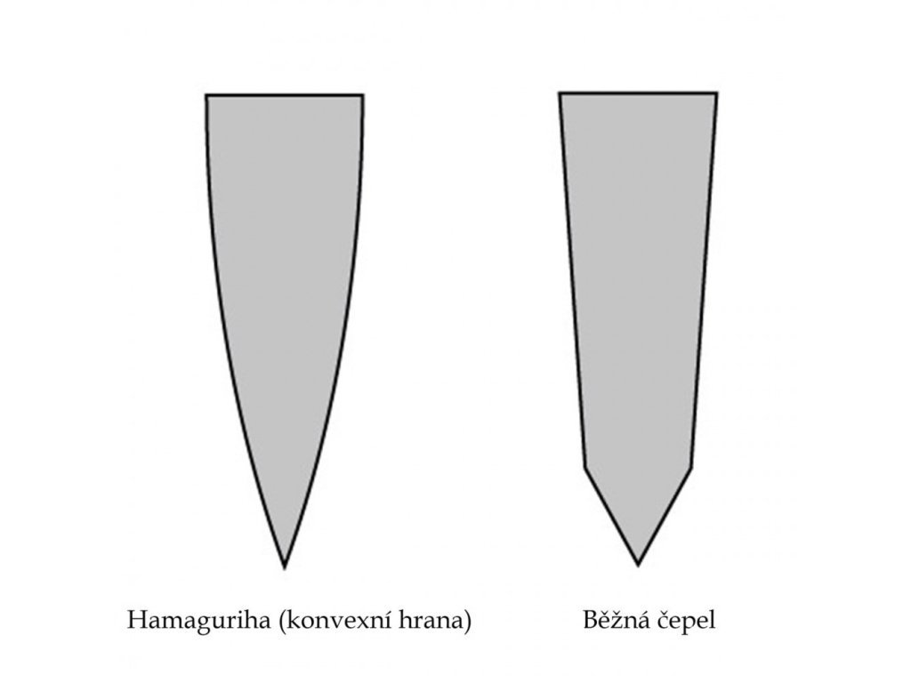 Ostrost: Hamaguriha (konvexní hrana) Vynikající prášková ocel SPG2 je broušena do tvaru "hamaguriba", stejně tak jako japonské meče. Tímto je zaručena dokonalá ostrost a trvanlivost ostří.