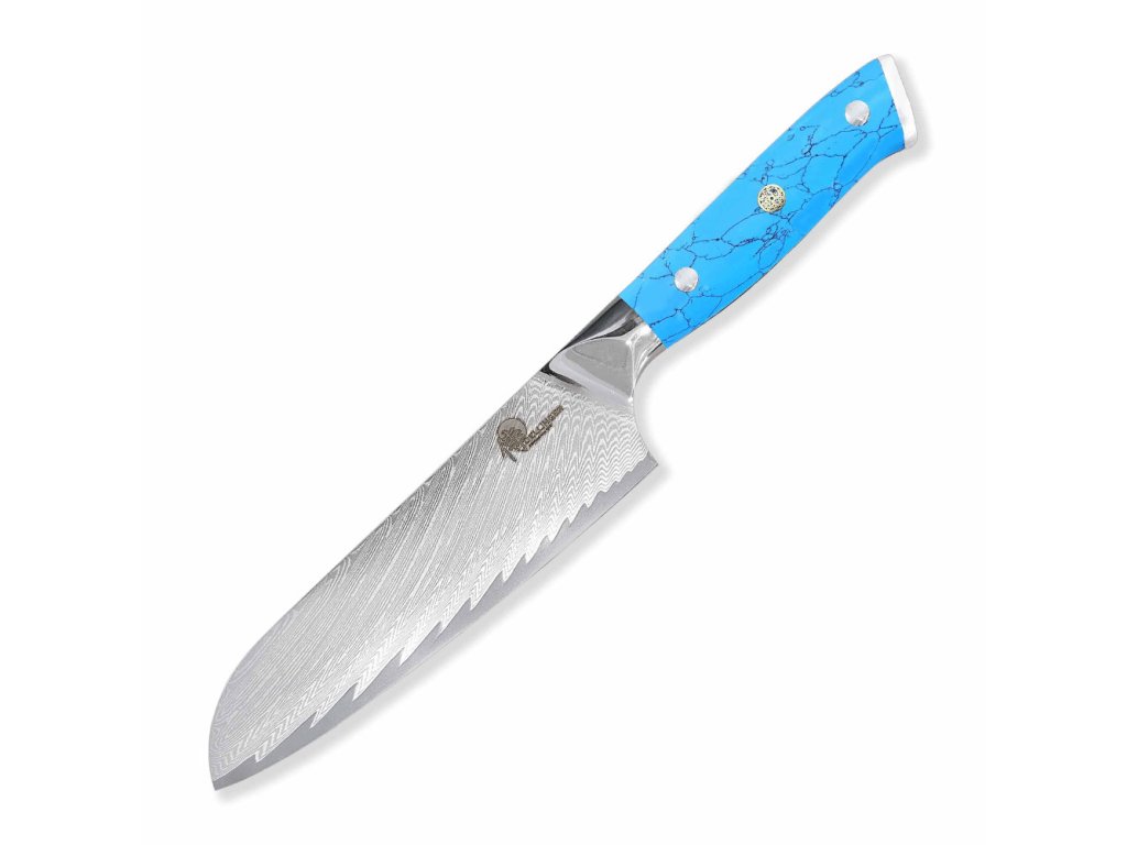 Nůž šéfkuchaře Santoku Dellinger Blue Stone Damascus