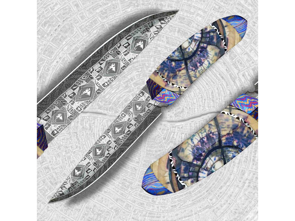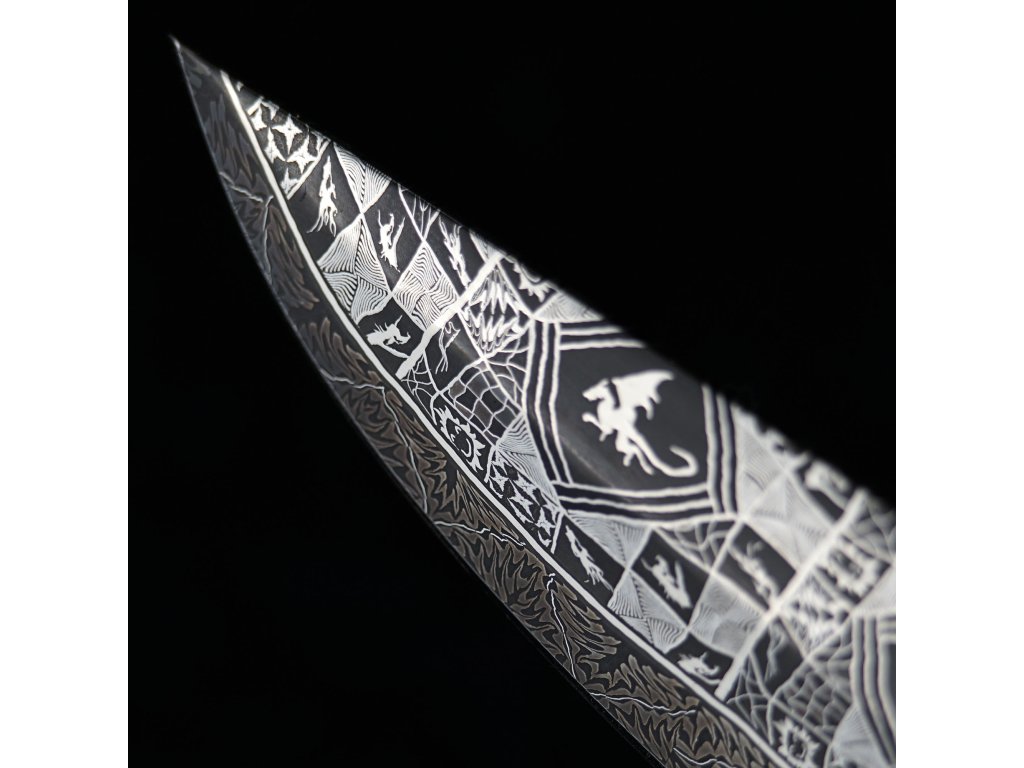 Sběratelský lovecký nůž Dellinger EVIL DRAGON Laminated & překrásná laminovaná ocel & včetně koženého pouzdra