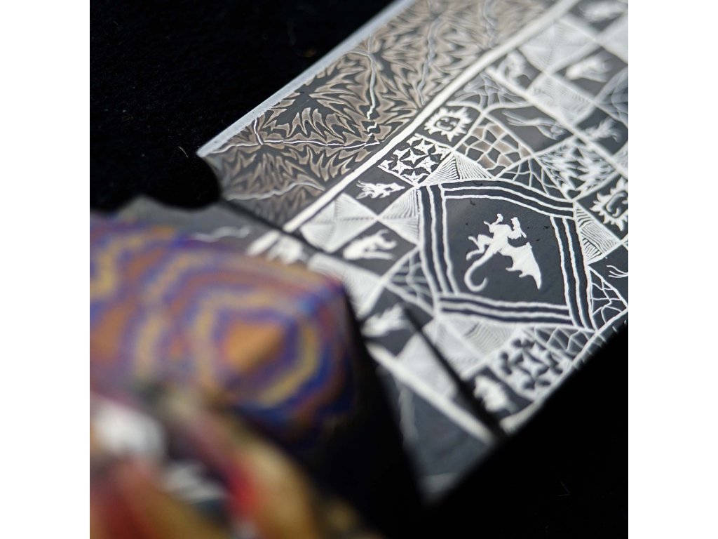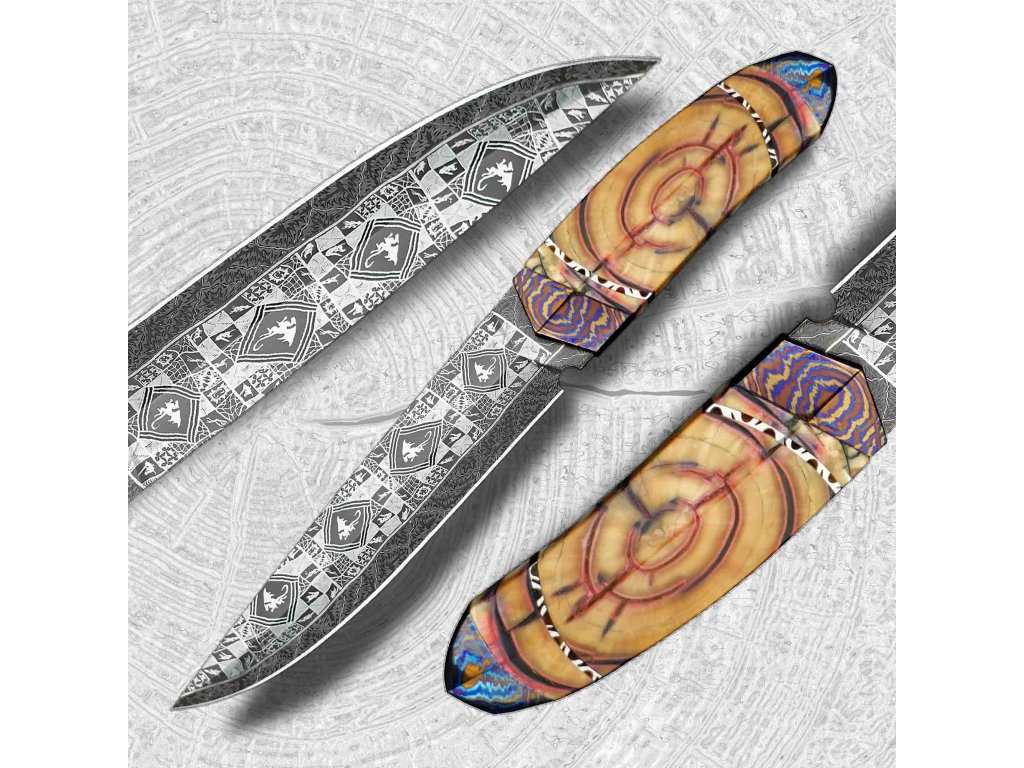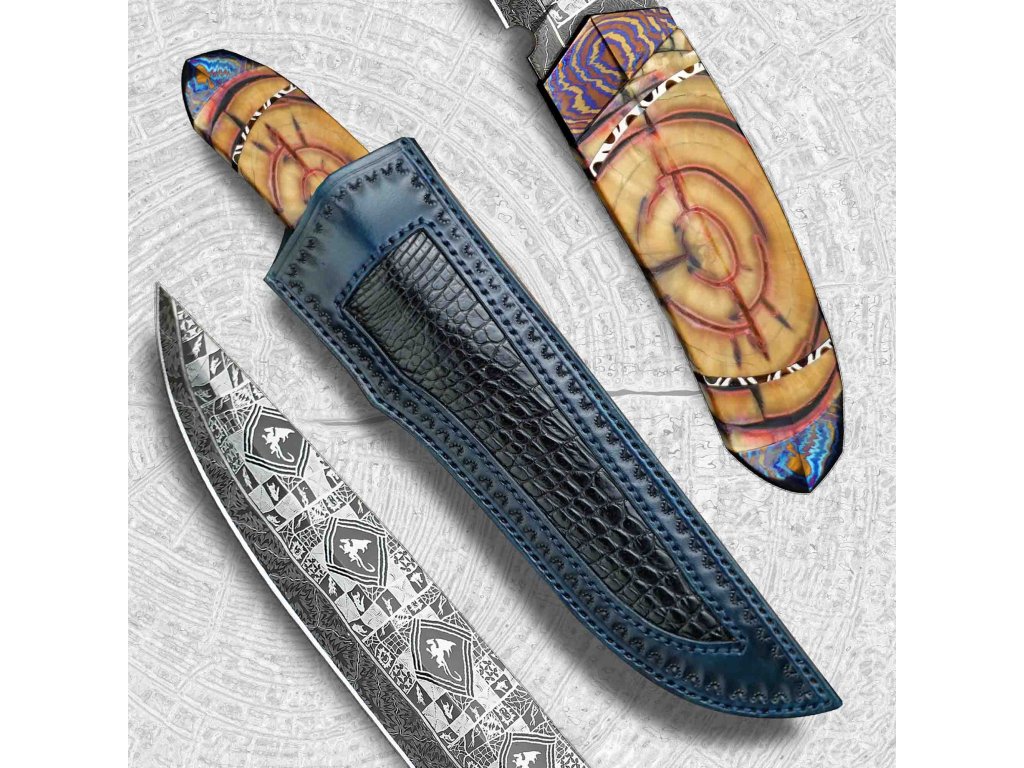 Sběratelský lovecký nůž Dellinger EVIL DRAGON Laminated & překrásná laminovaná ocel & včetně koženého pouzdra
