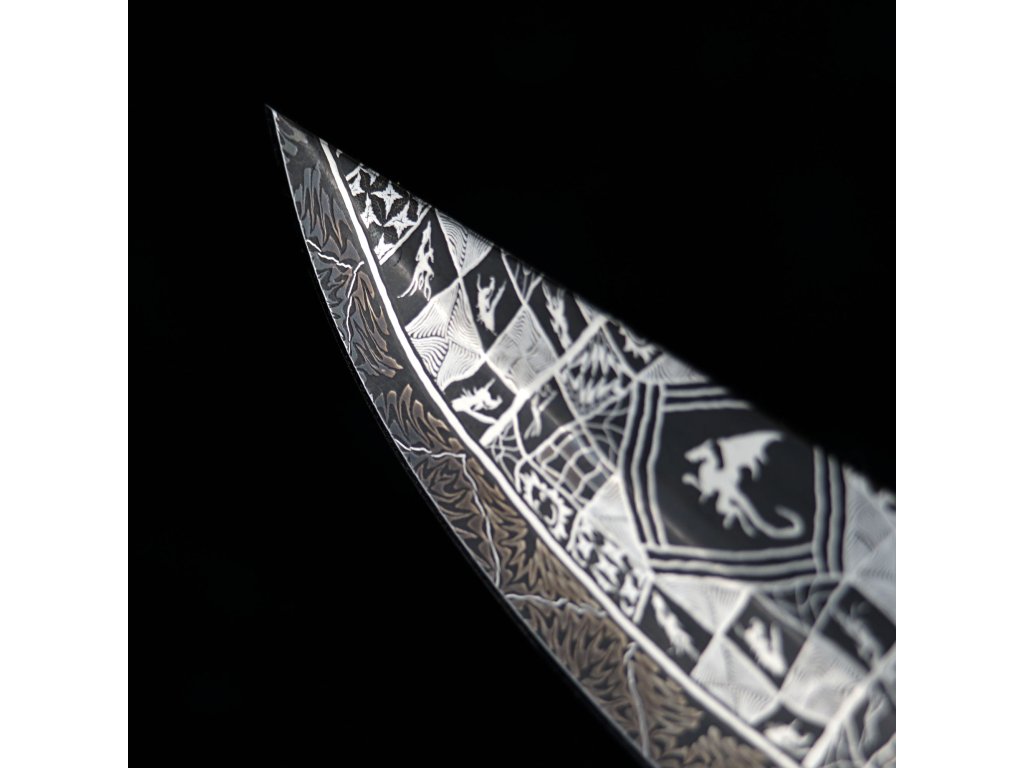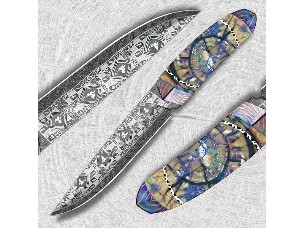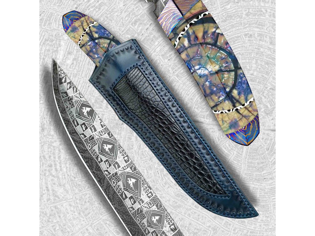 Sběratelský lovecký nůž Dellinger EVIL DRAGON Laminated & překrásná laminovaná ocel & včetně koženého pouzdra