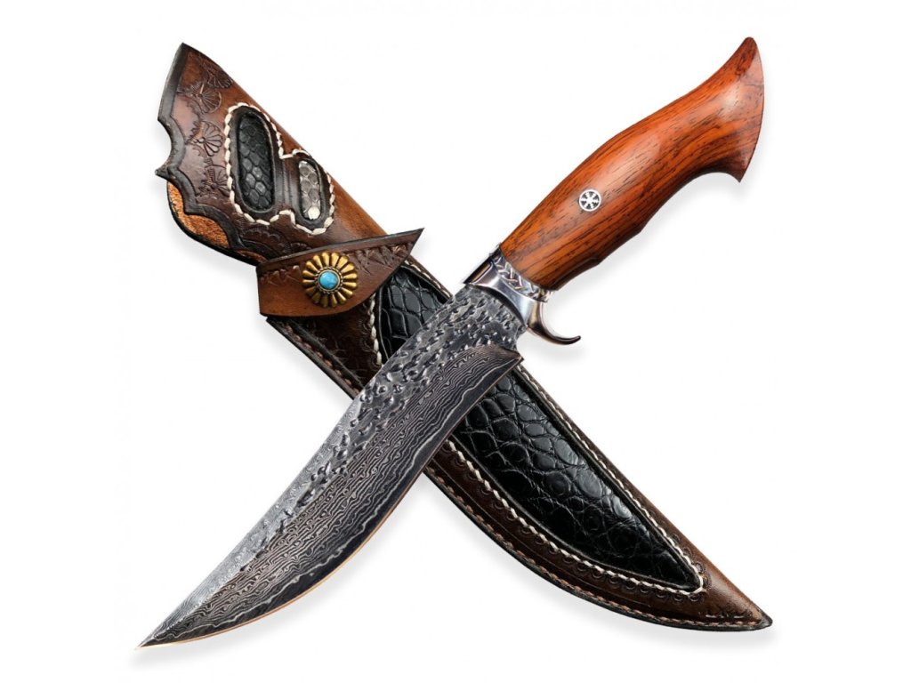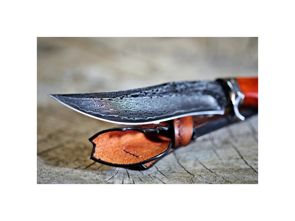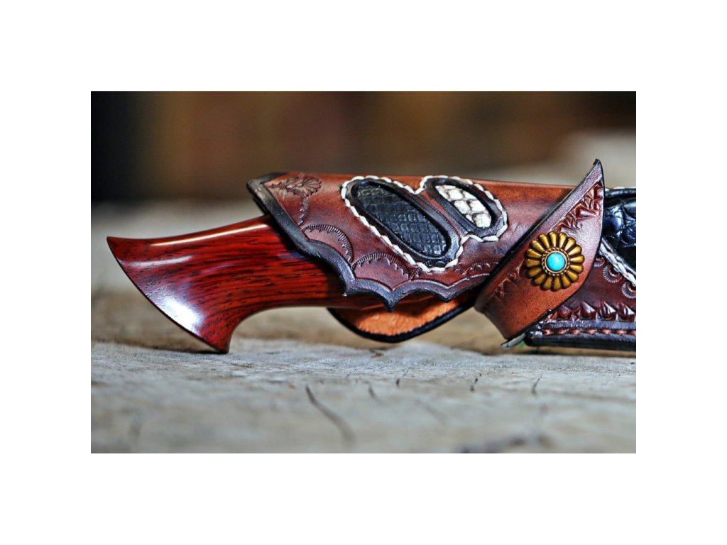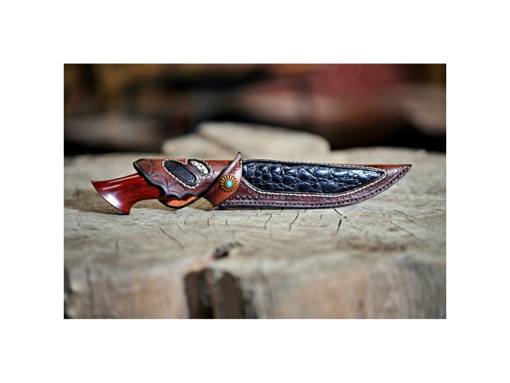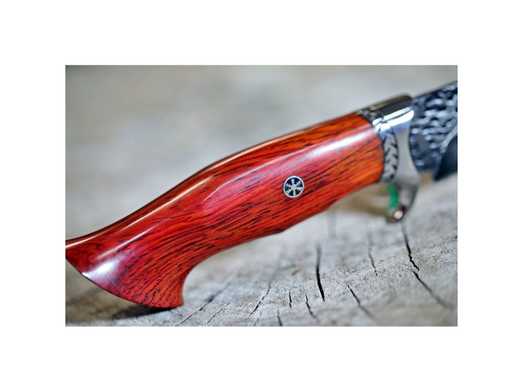 Rukojeť je z exotického palisandrového dřeva. Toto dřevo vyniká svojí odolností a krásnou barvou. Rukojeť má tvar, který ideálně padne do každé ruky. Pouzdro je vyrobené z kvalitní argentinské hovězí kůže.