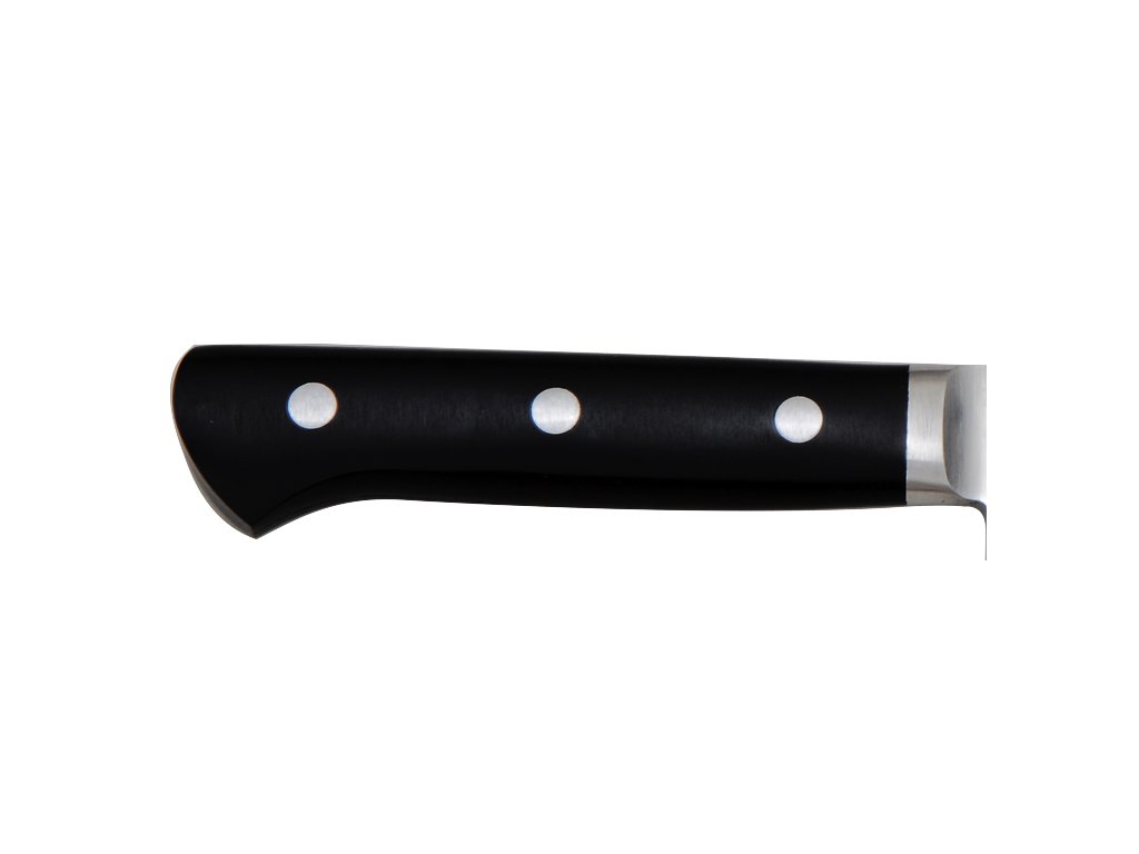 Hygienická rukojeť s antibakteriálními vlastnostmi je vyrobena z materiálu, který se nazývá polyacetal (POM), který se vyznačuje mimořádnou trvanlivostí. Rukojeť je zajištěna třemi dokonale zasazenými nýty a mezi ní a čepelí je další kovová výztuha.