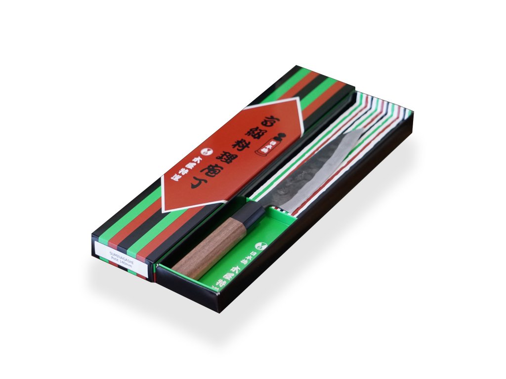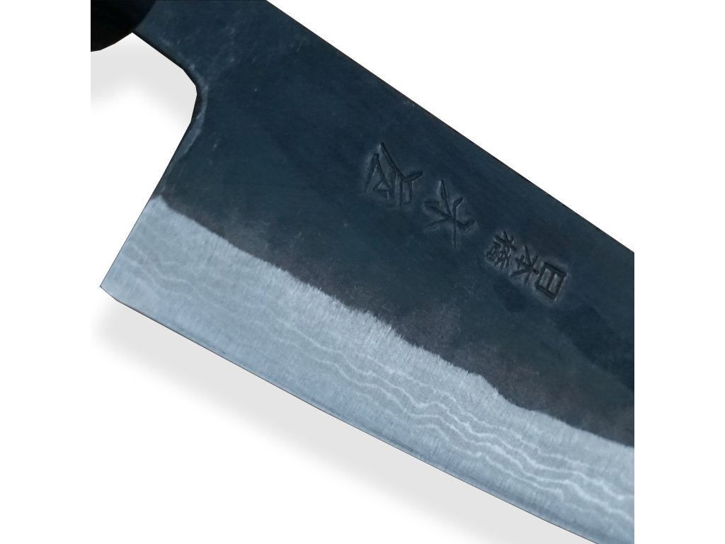 Při výrobě nožů KIYA Suminagashi Black se využívá tradiční kovářské techniky Echizen. Ohřev na dřevěném uhlí se dřevem z borovice a následné kalení vdechnou oceli život! Takto vzniká nůž s mramorovým vzorem s 11 vrstvami damaškové oceli